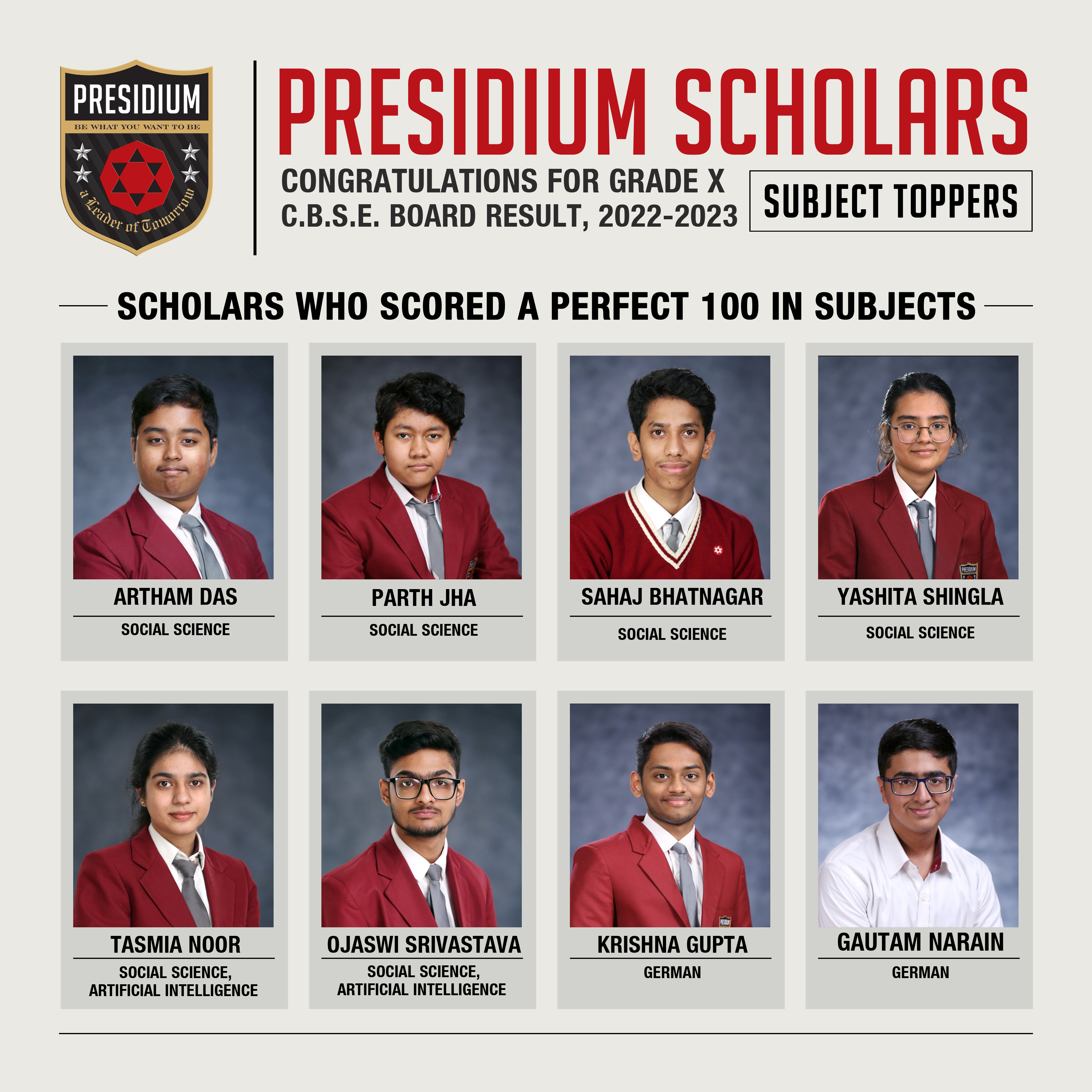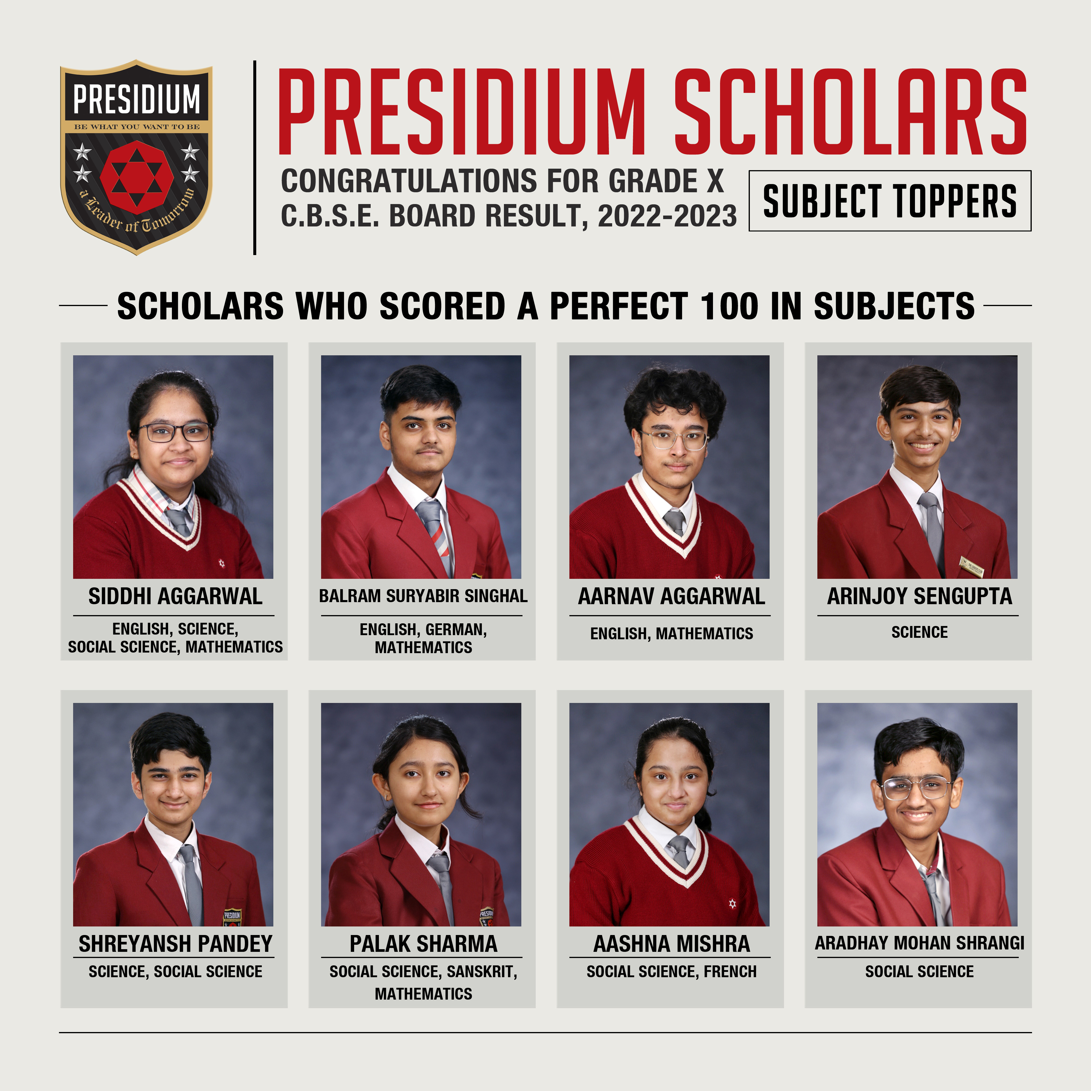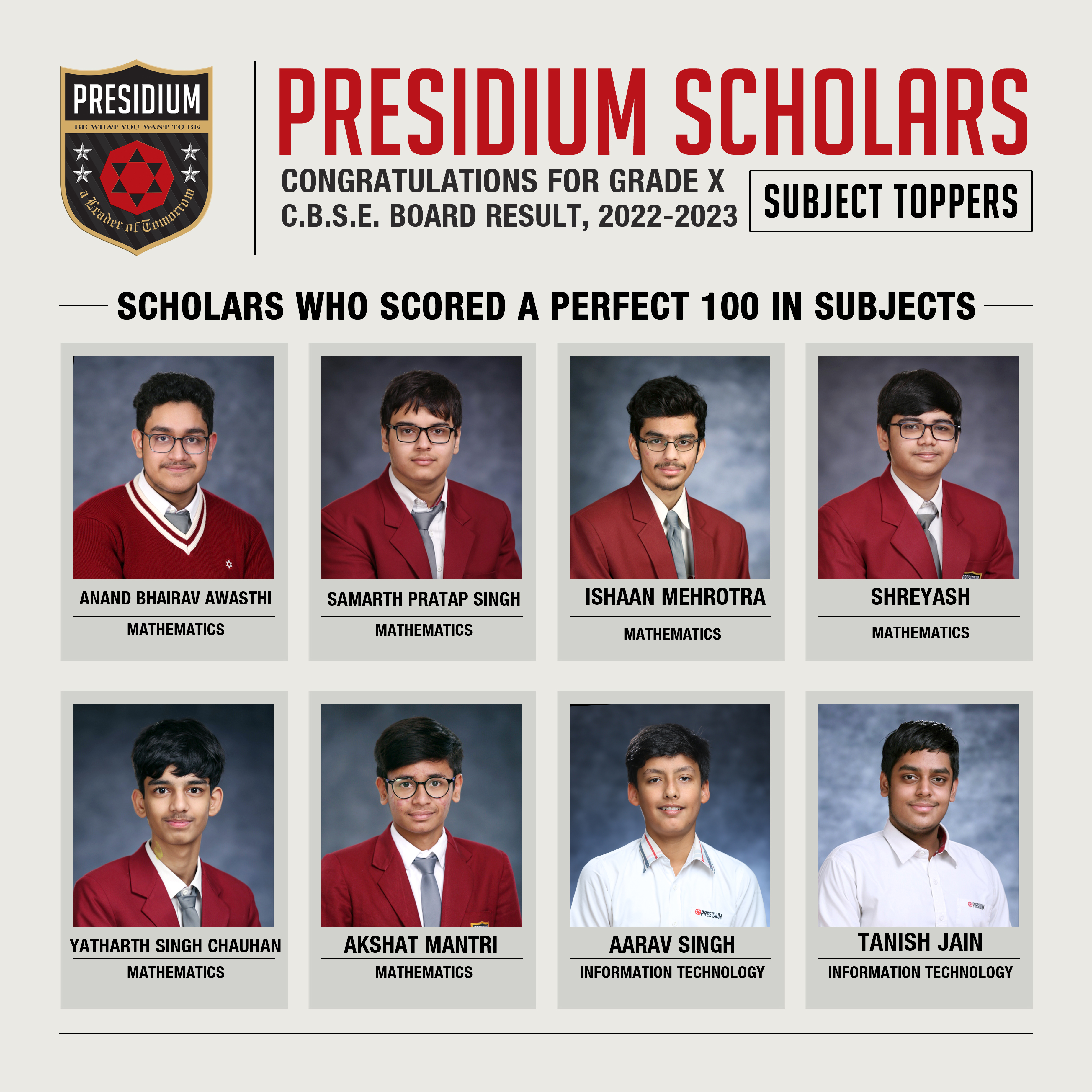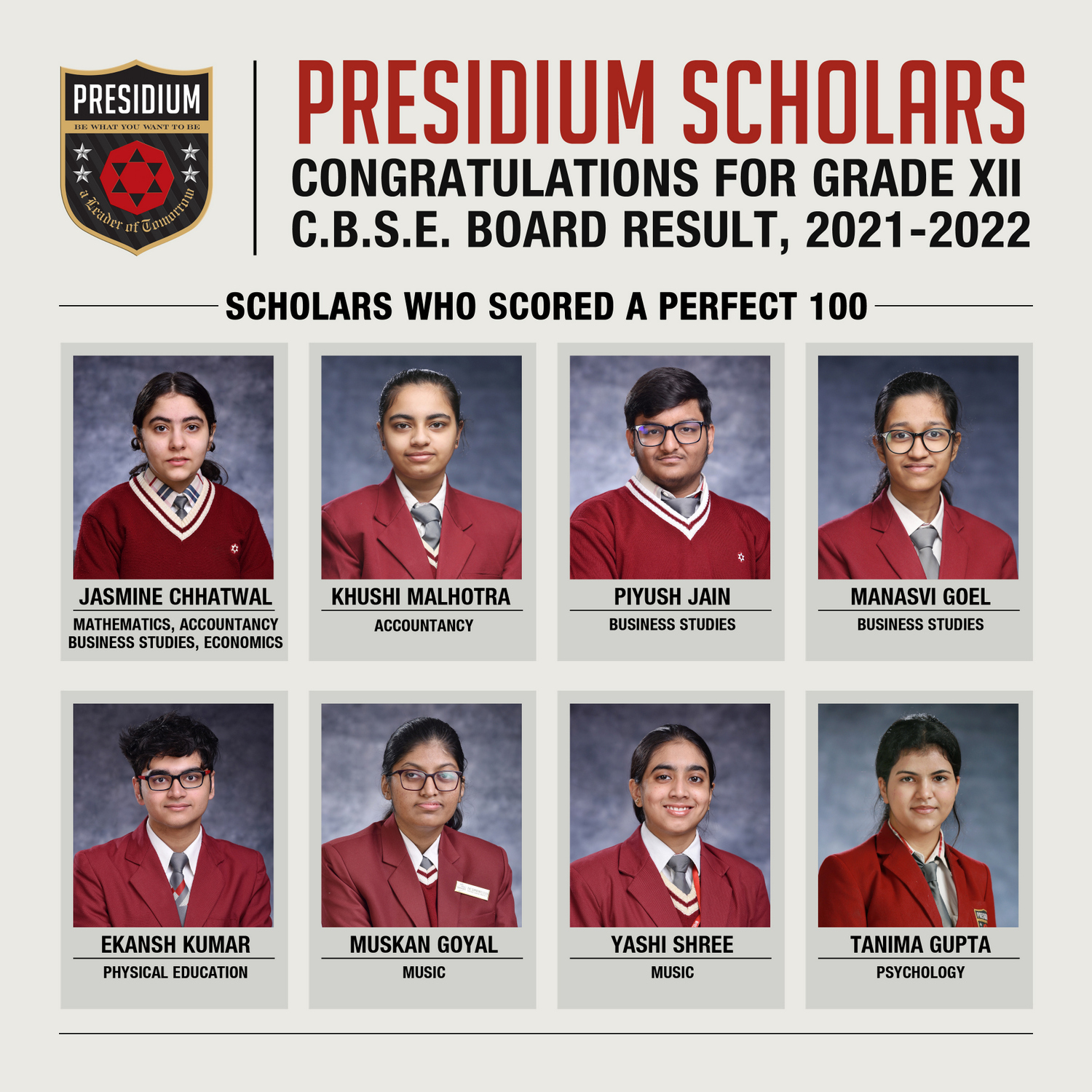 SCHOLARS WHO SCORED A PERFECT 100