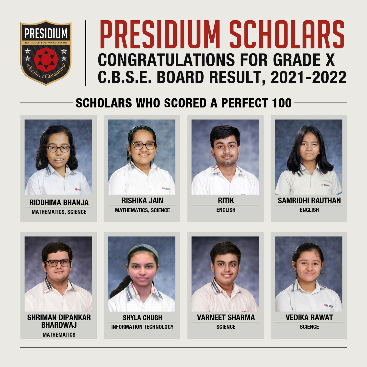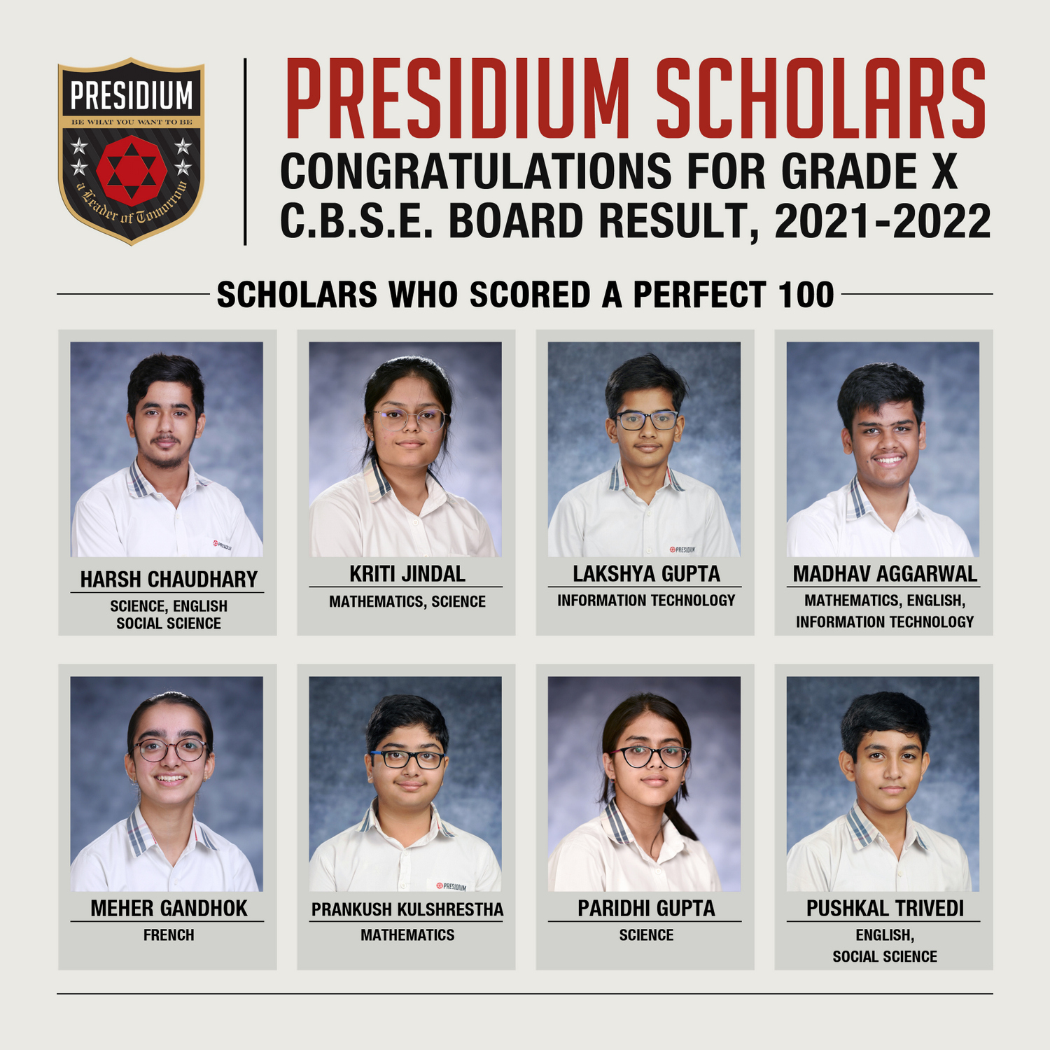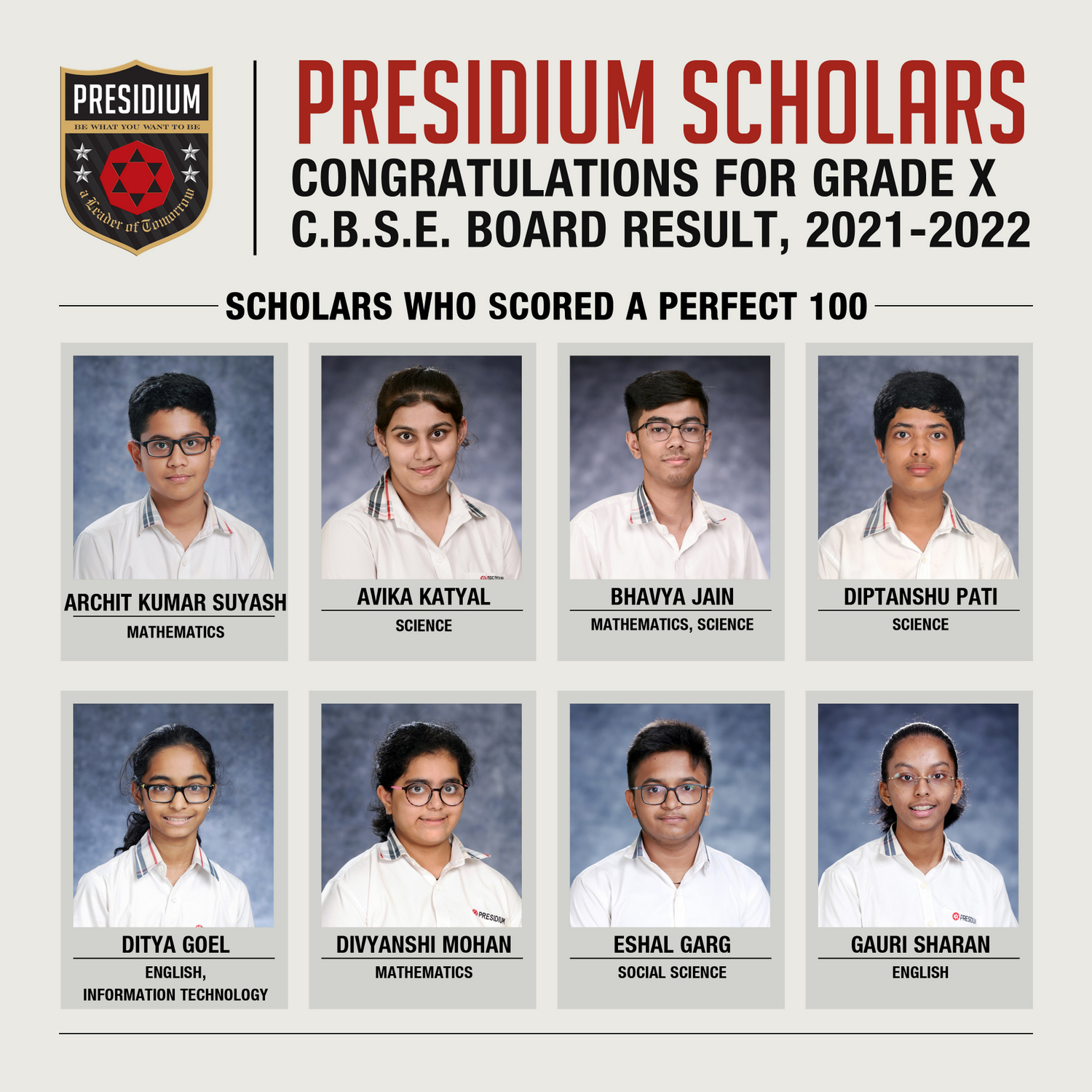 SCHOLARS WHO SCORED A PERFECT 100