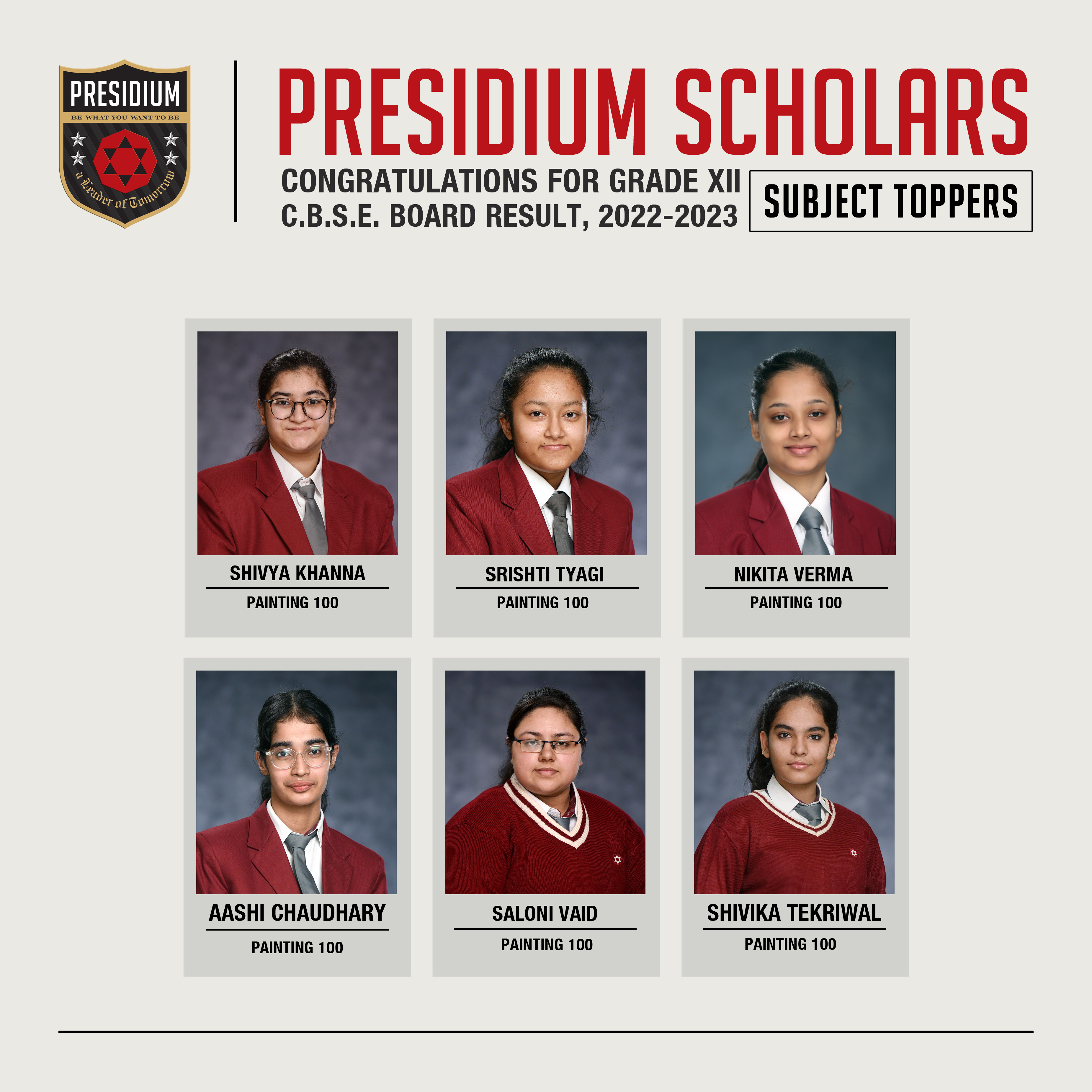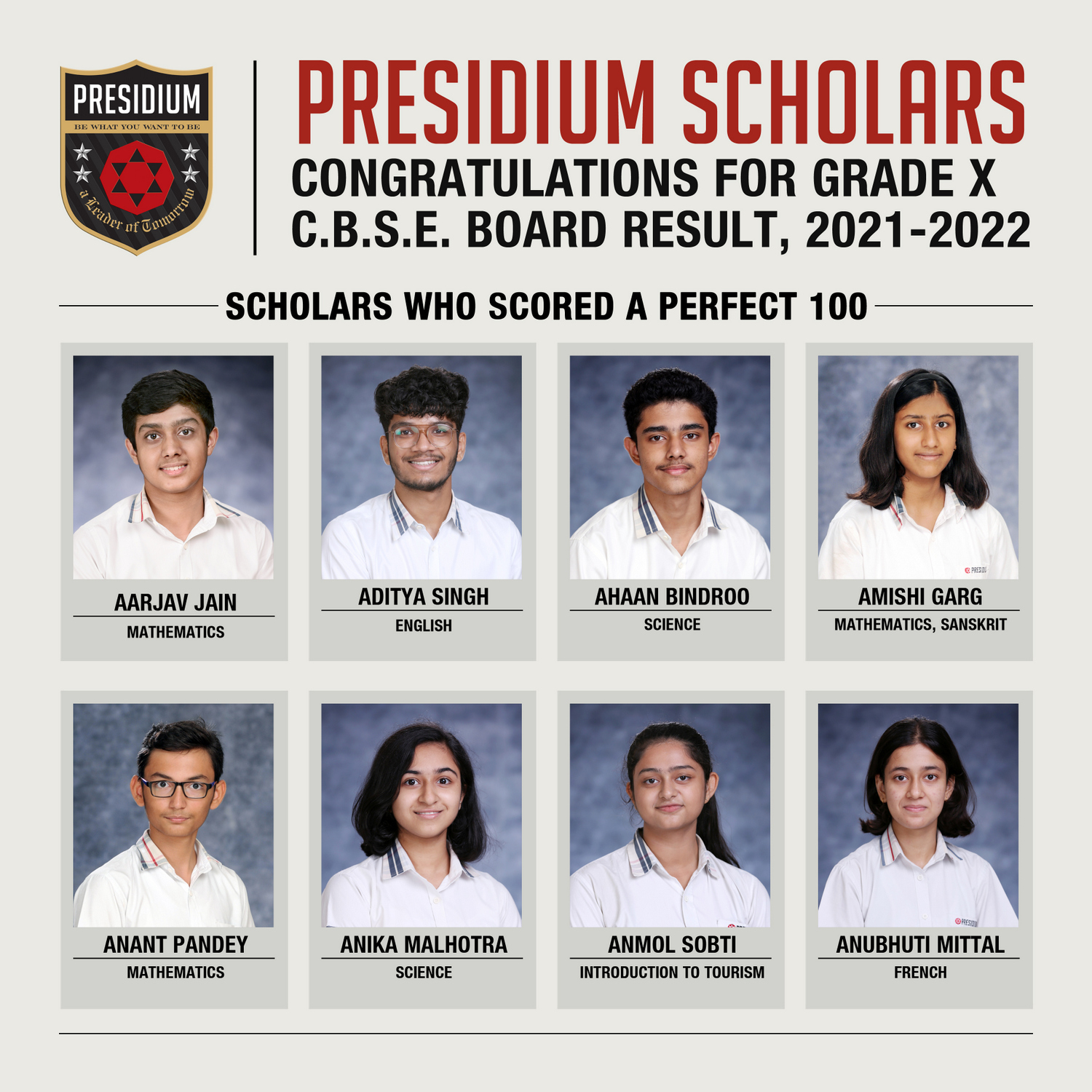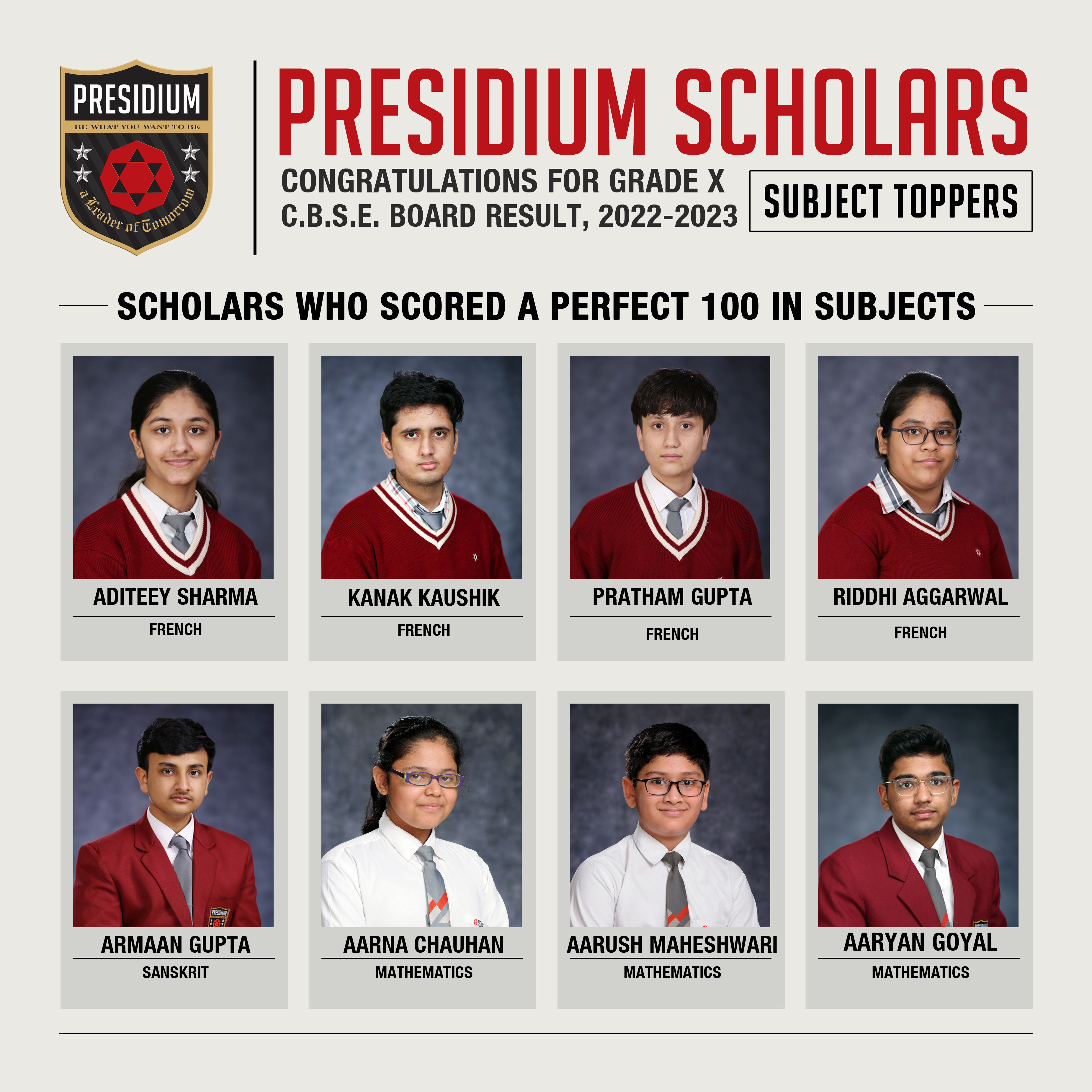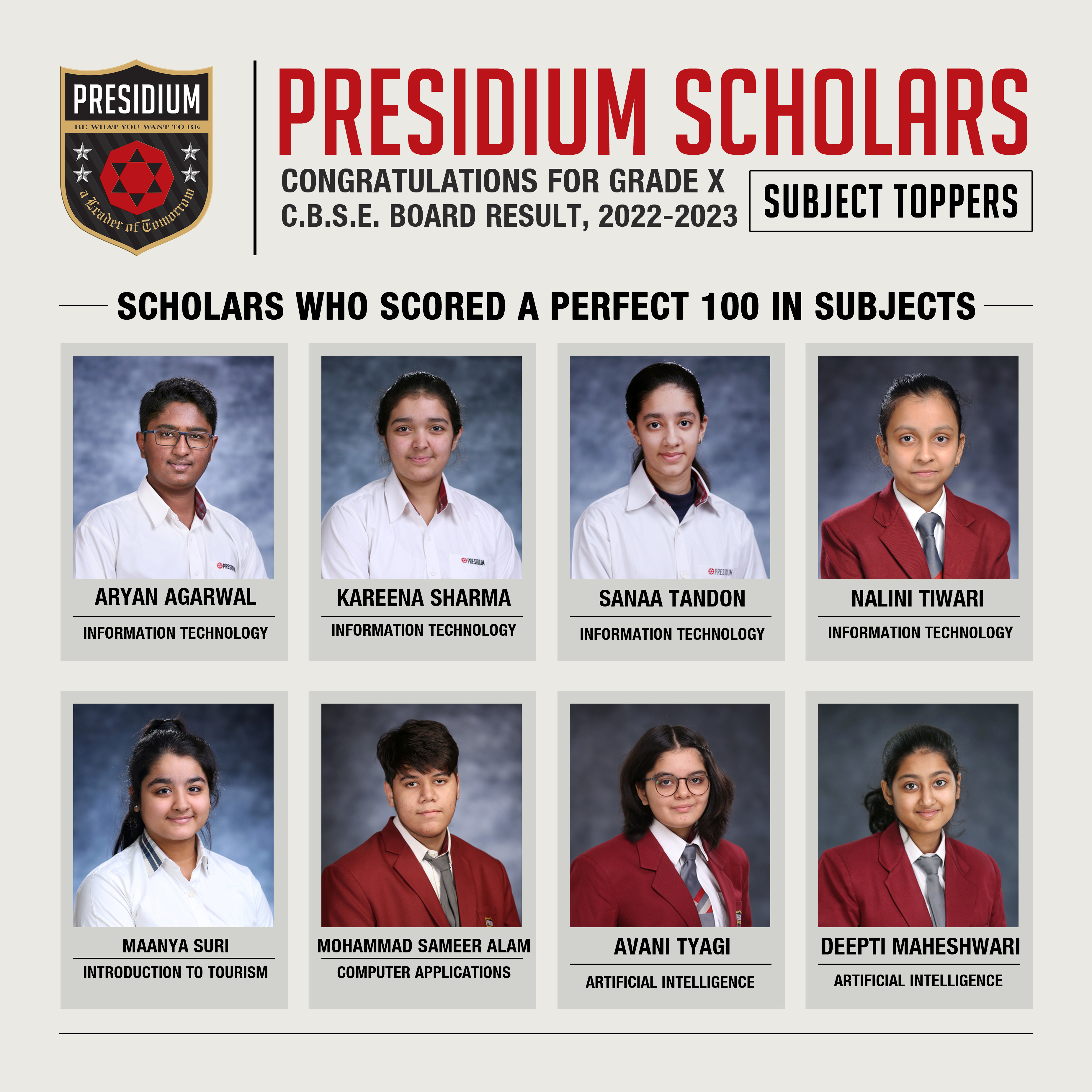SCHOLARS WHO SCORED A PERFECT 100