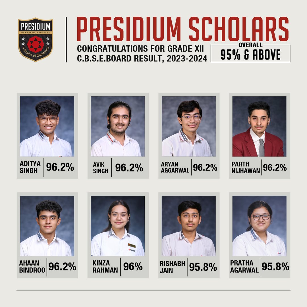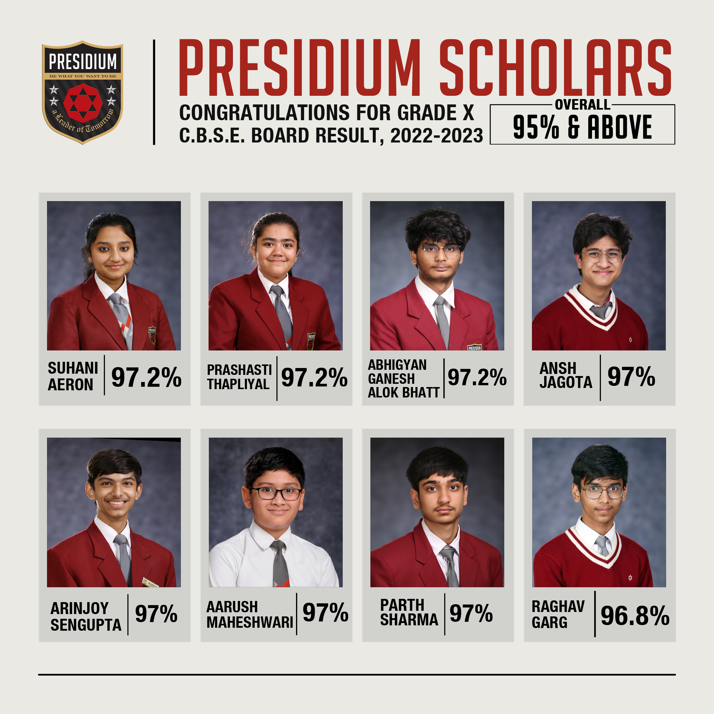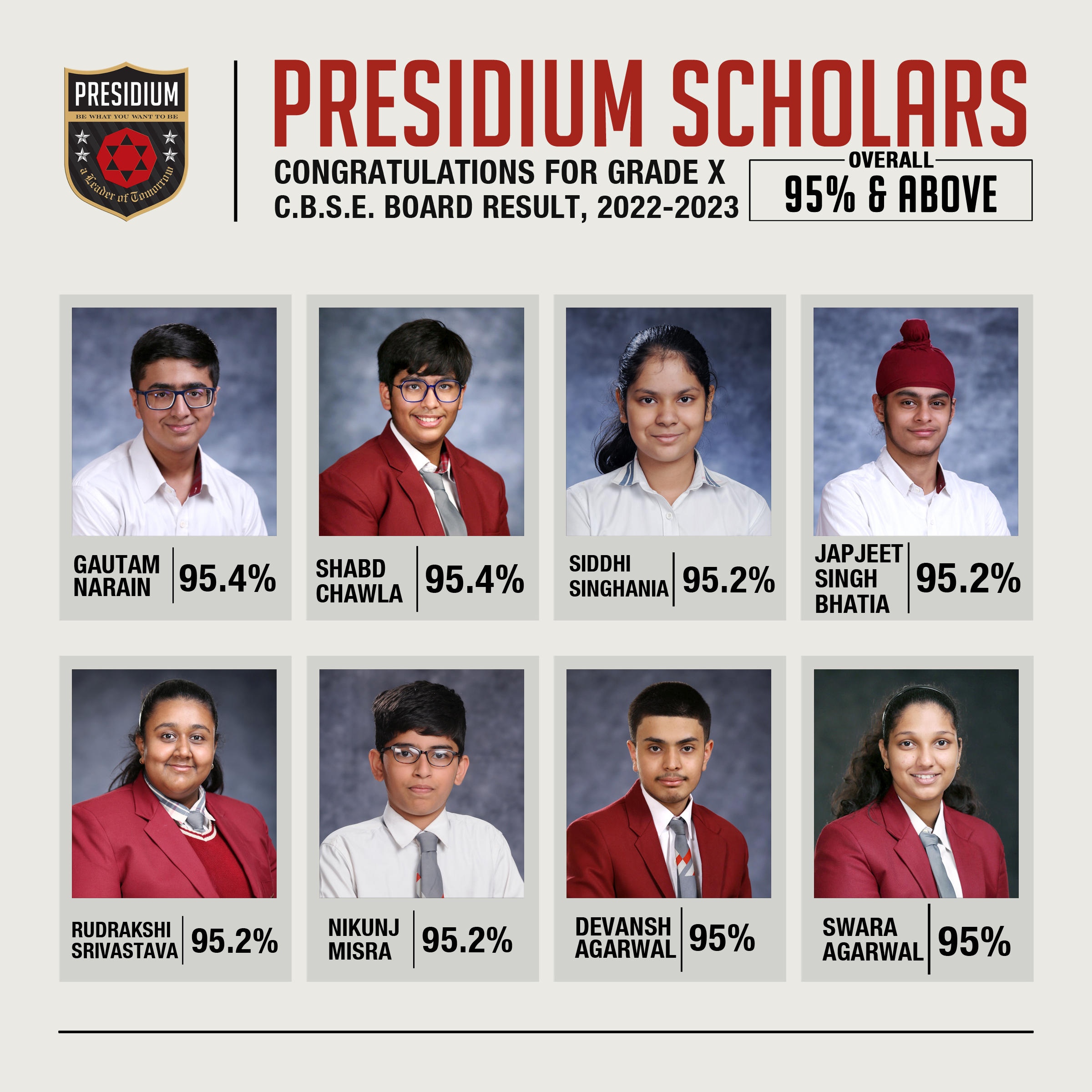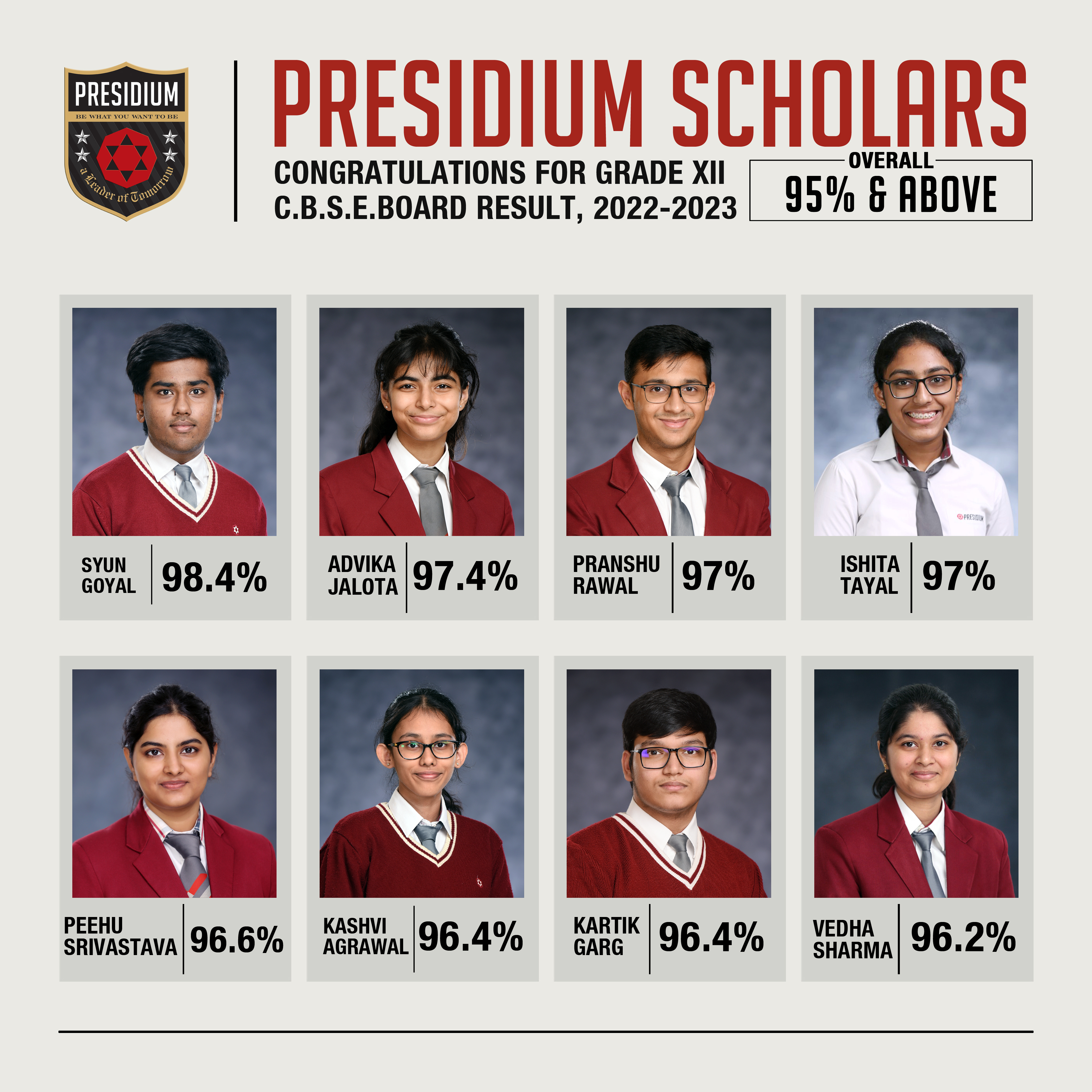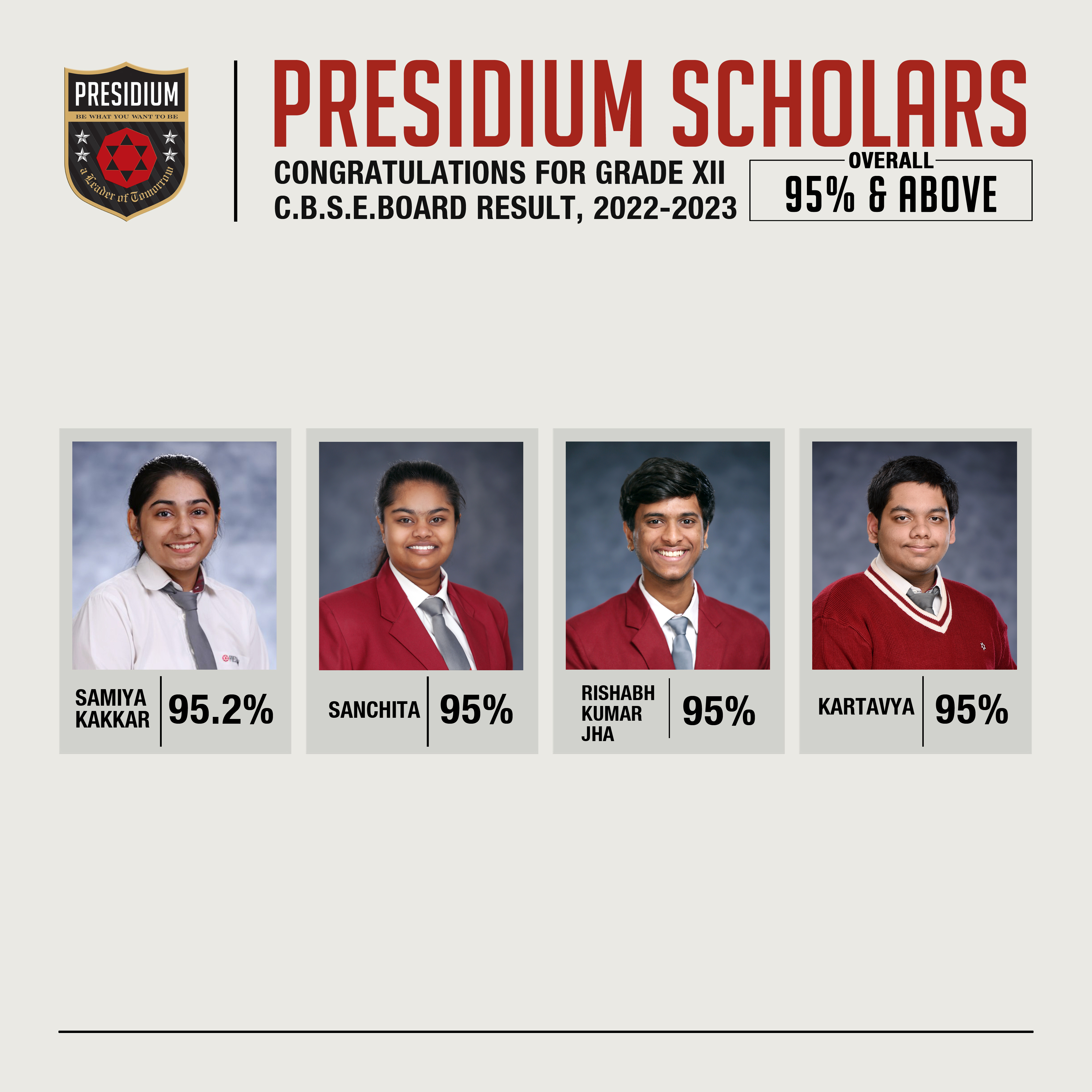 SCHOLARS WITH 95% AND ABOVE