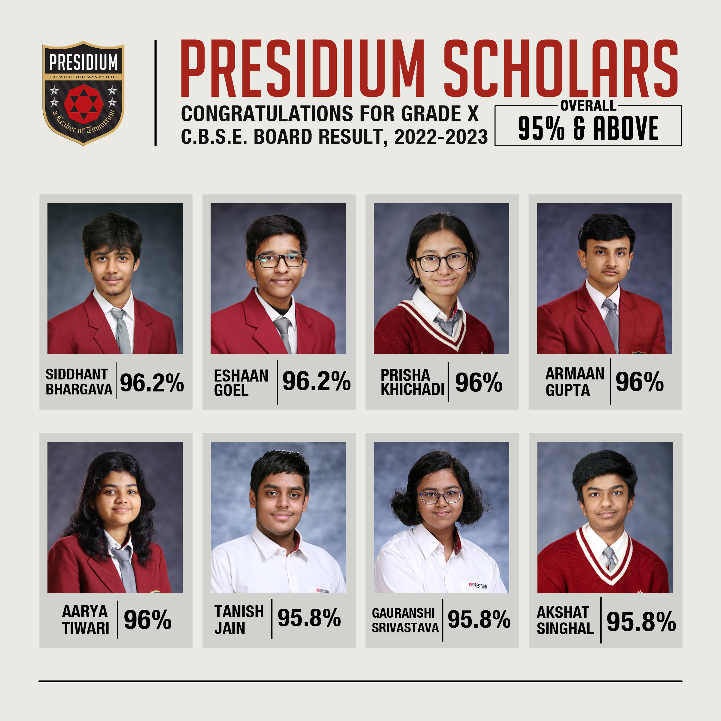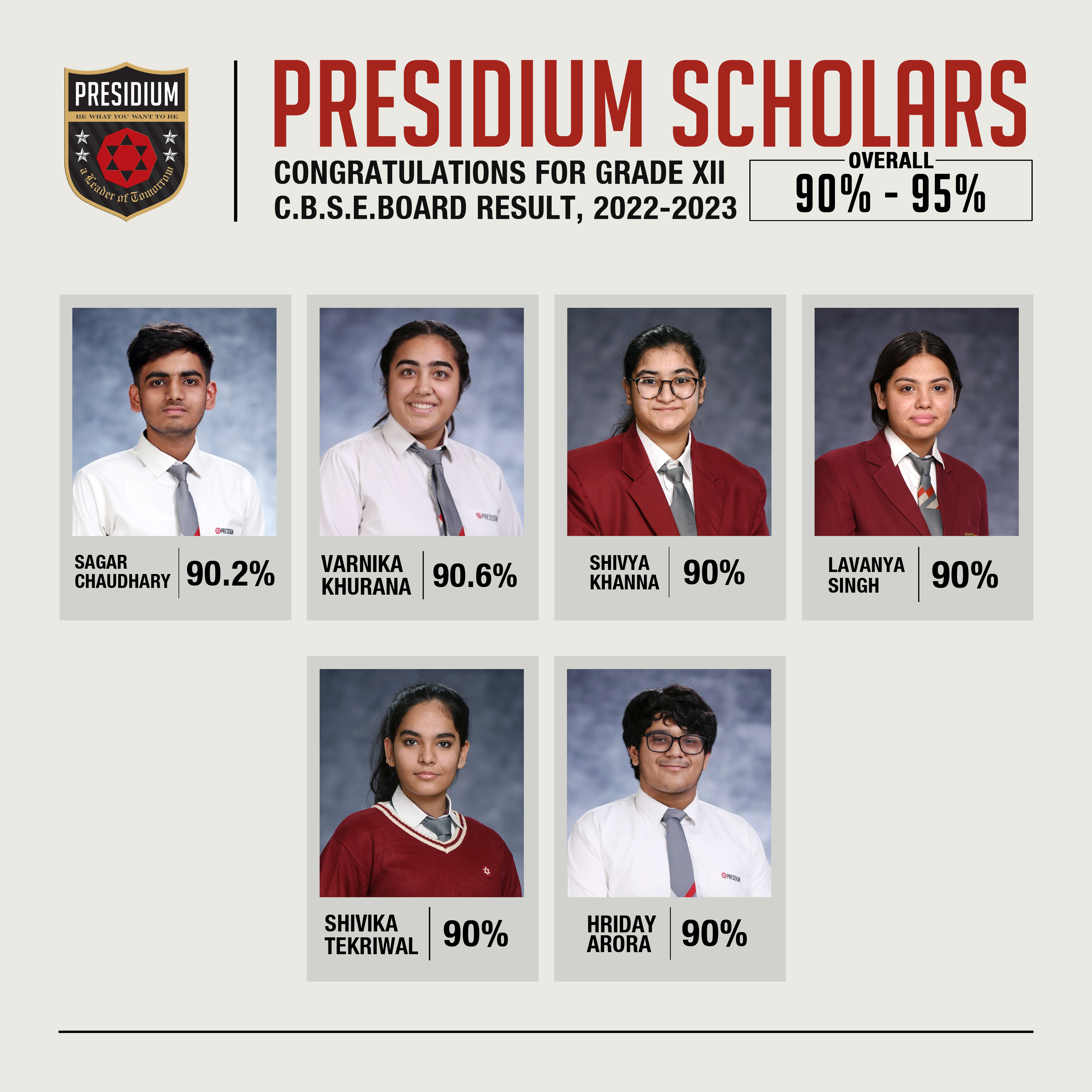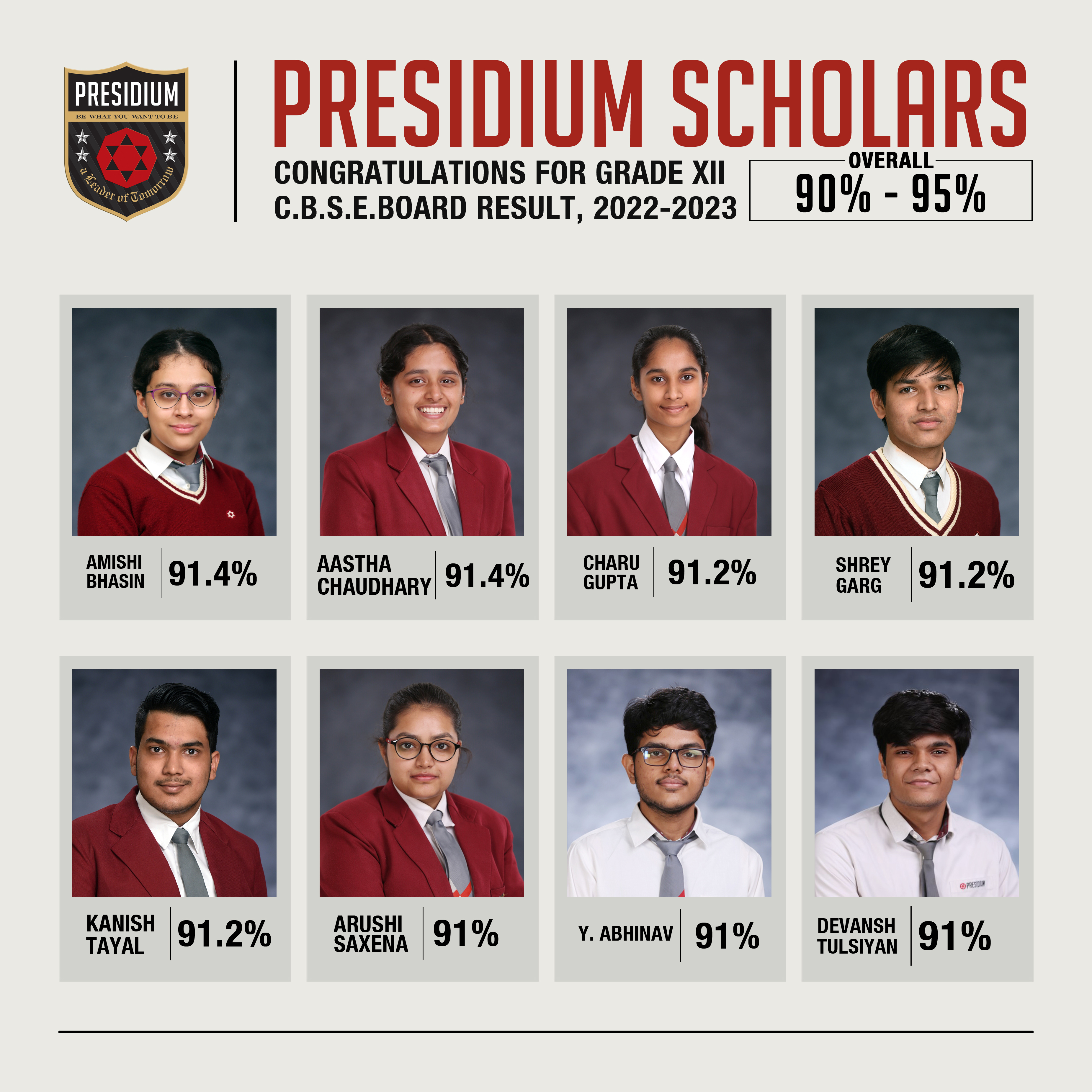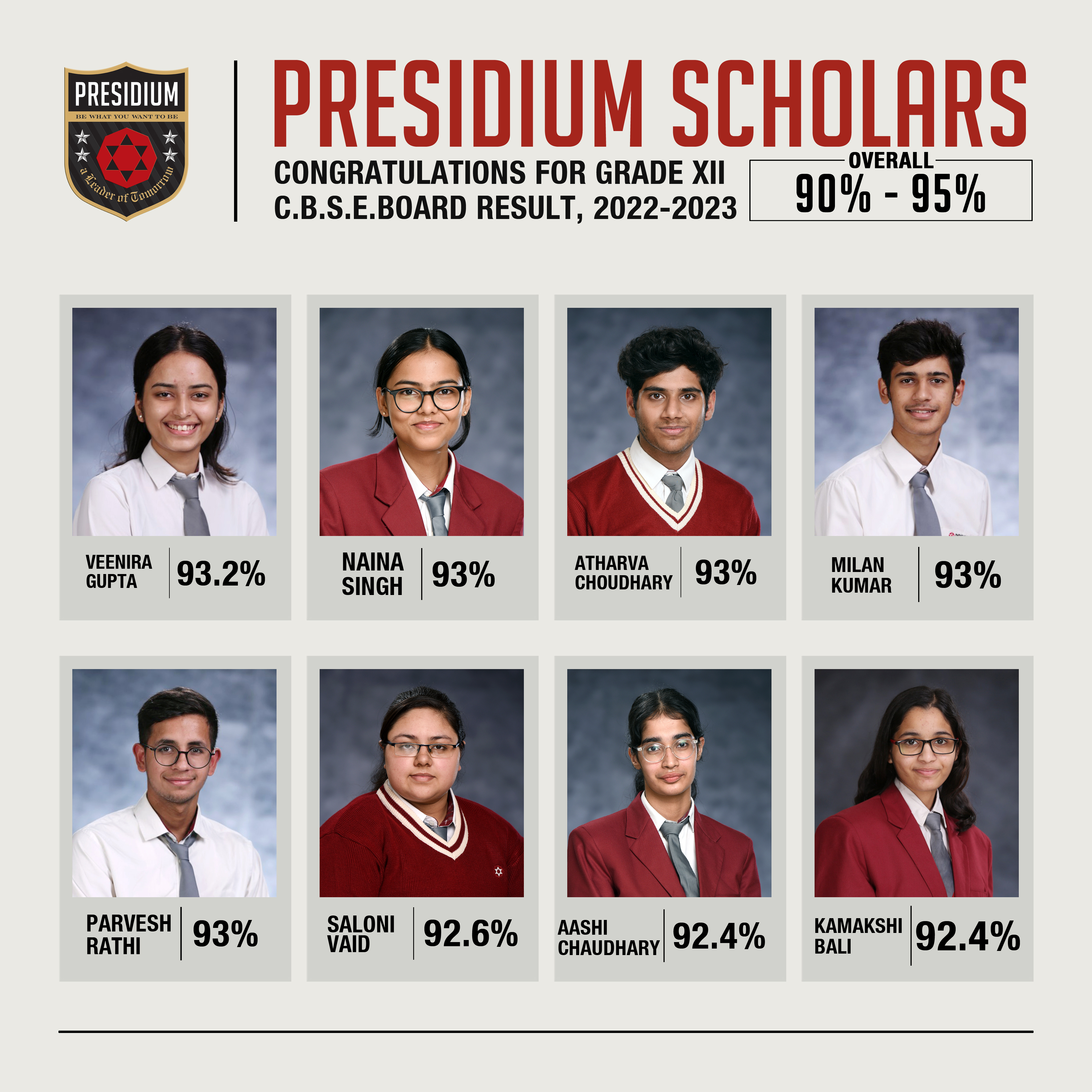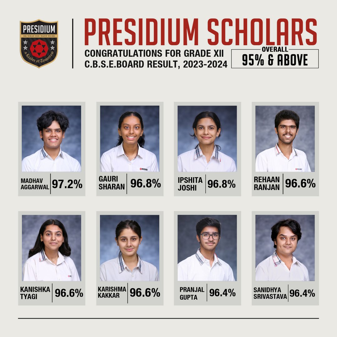 SCHOLARS WITH 95% AND ABOVE