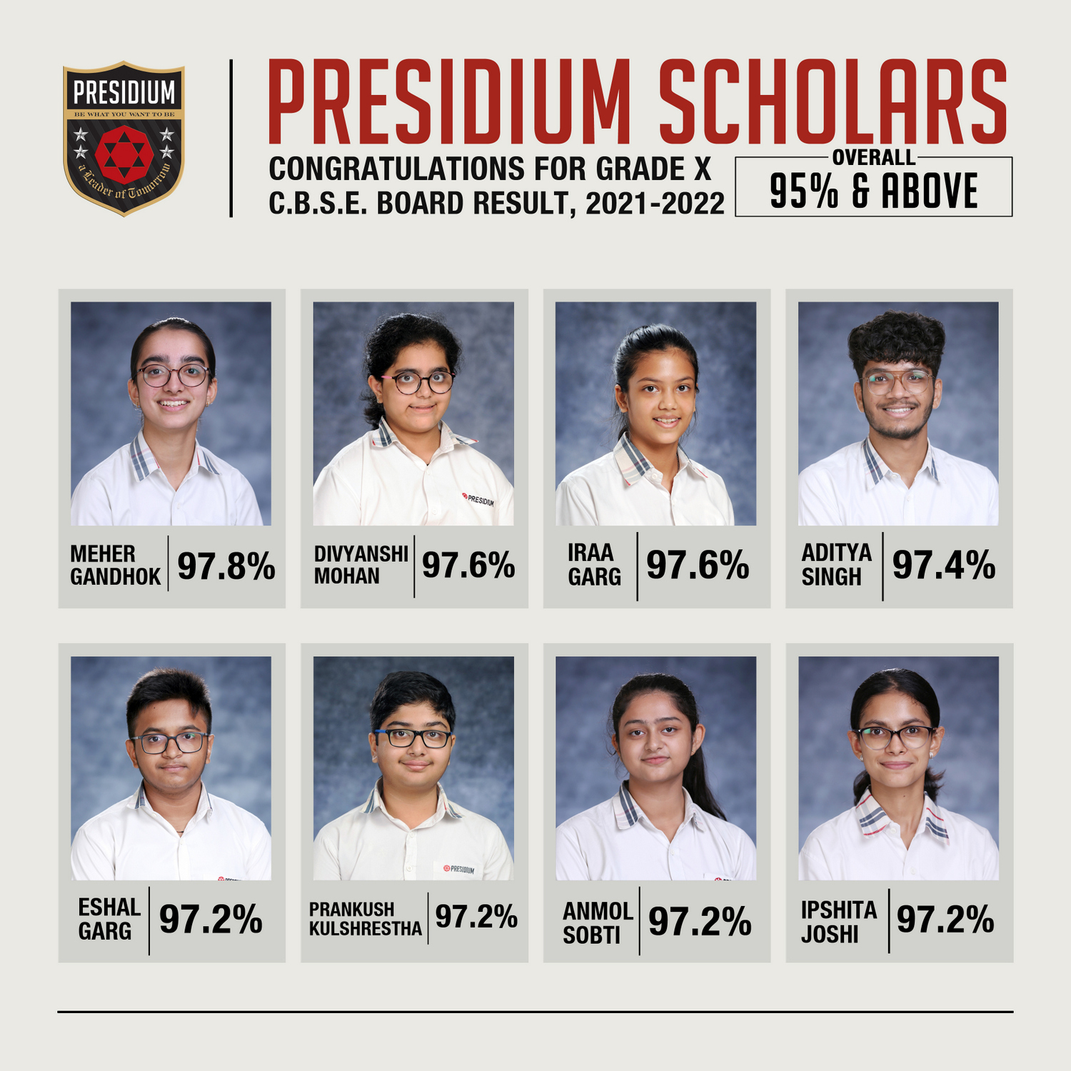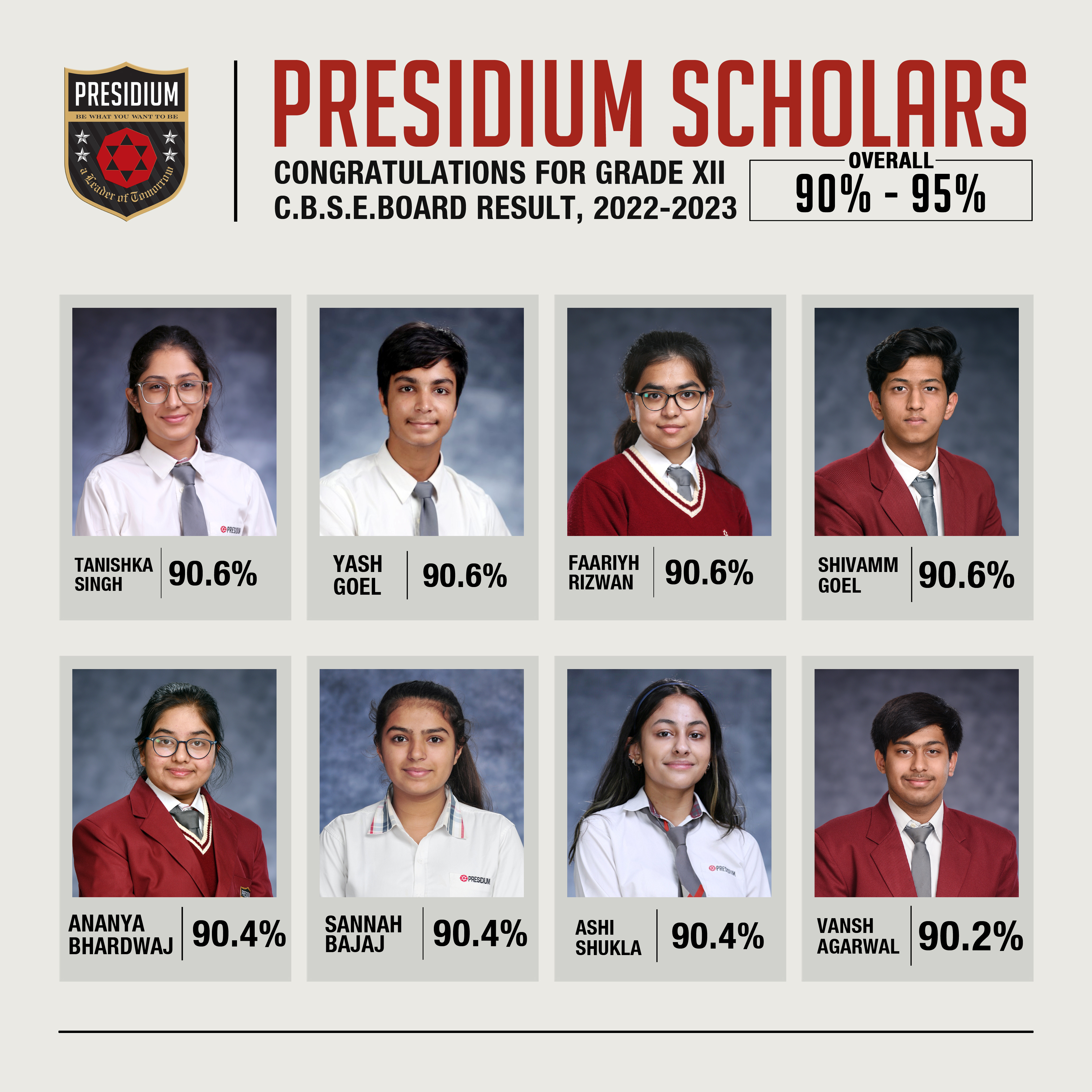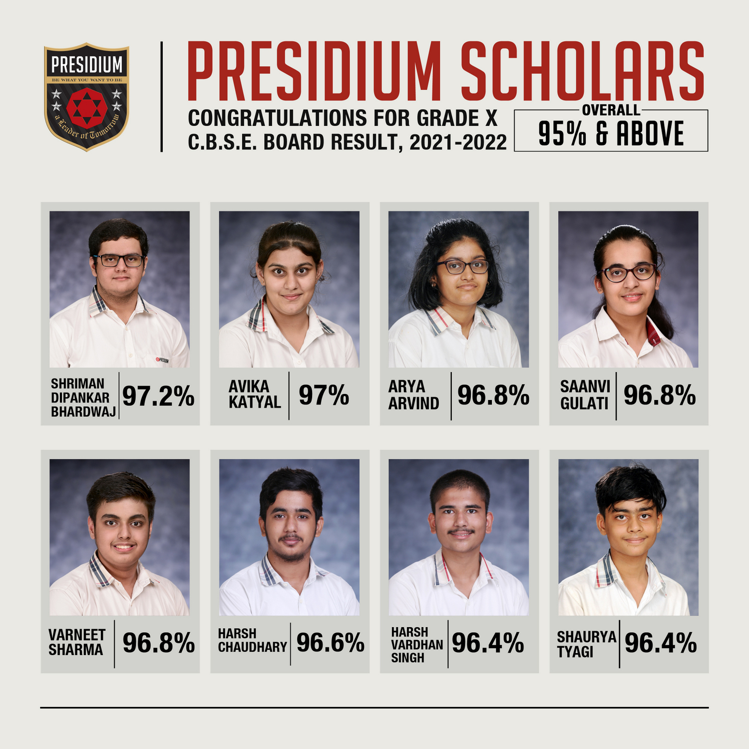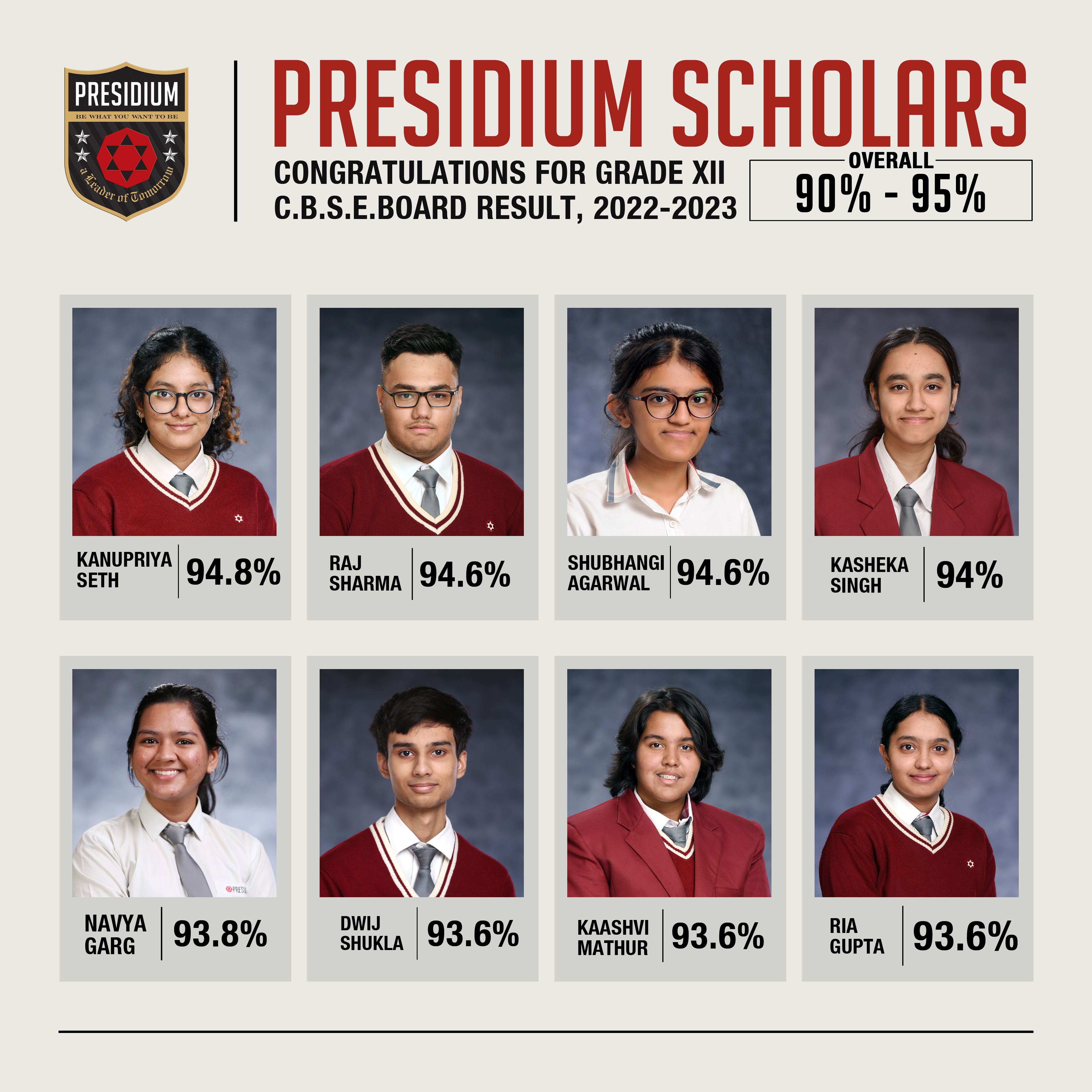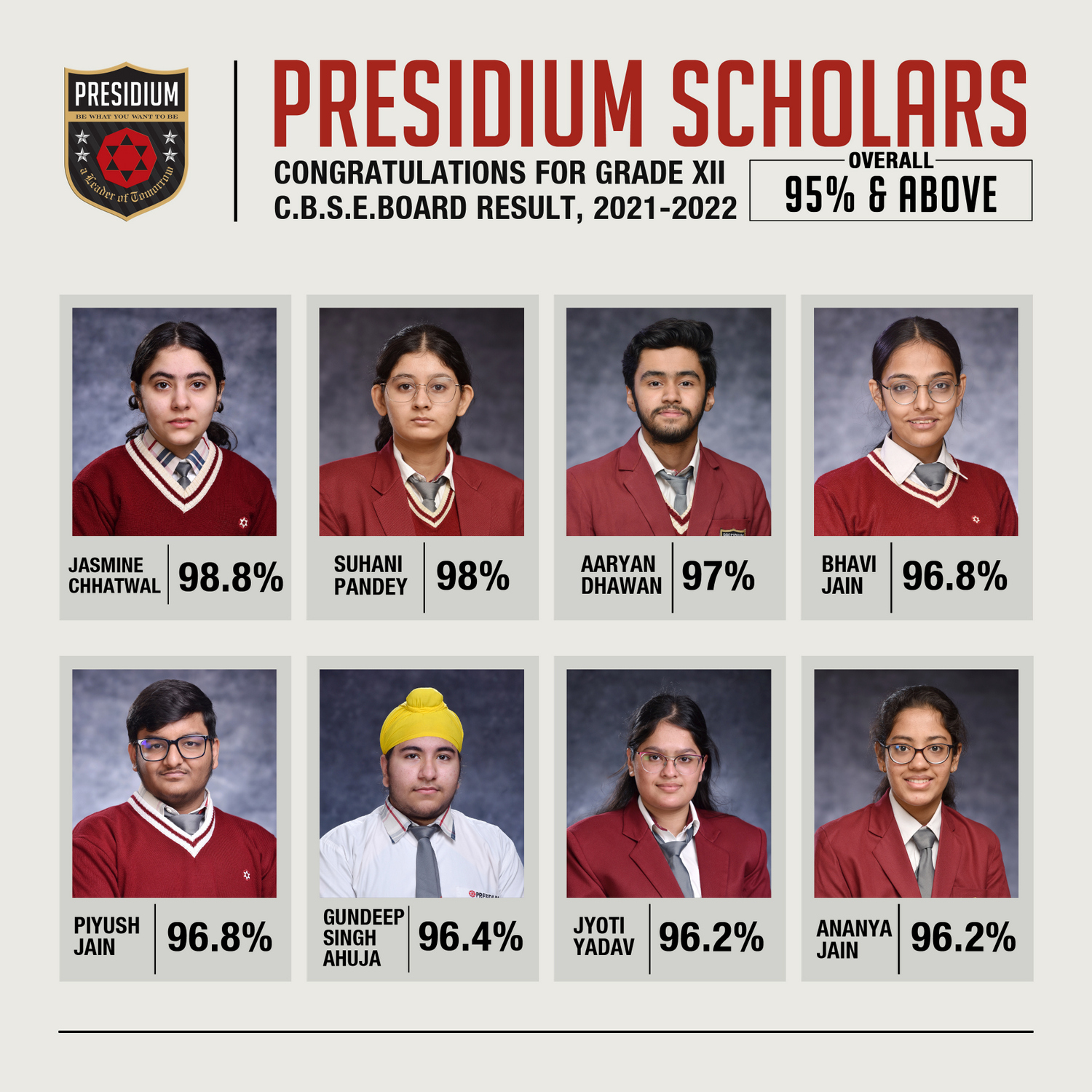 SCHOLARS WITH 95% AND ABOVE