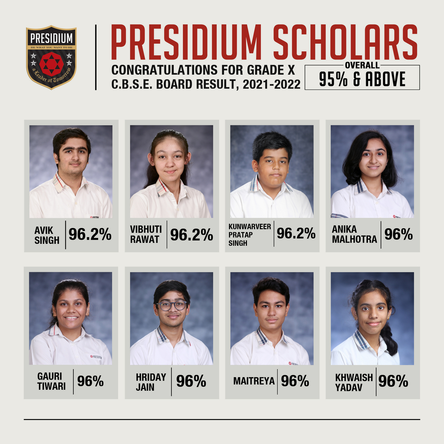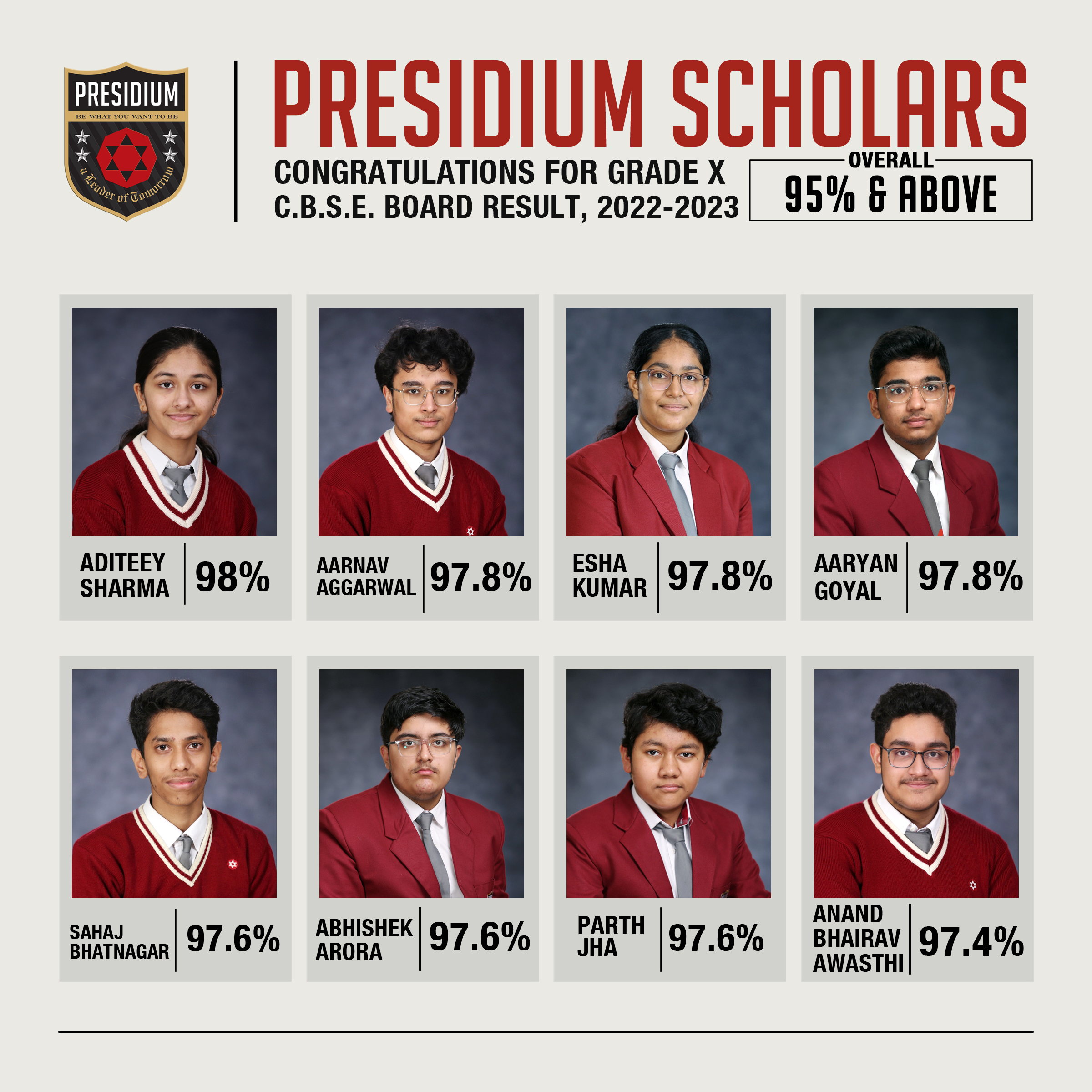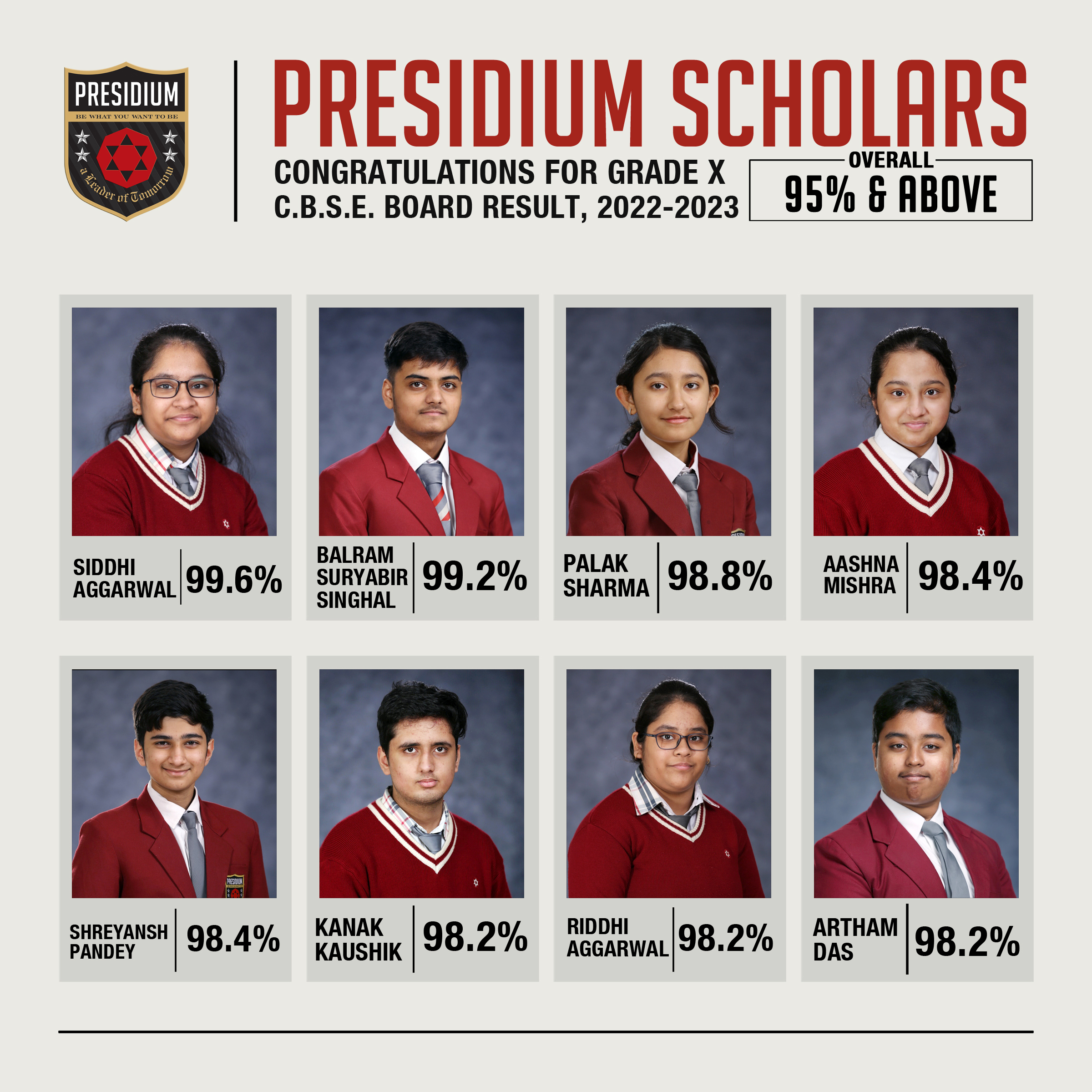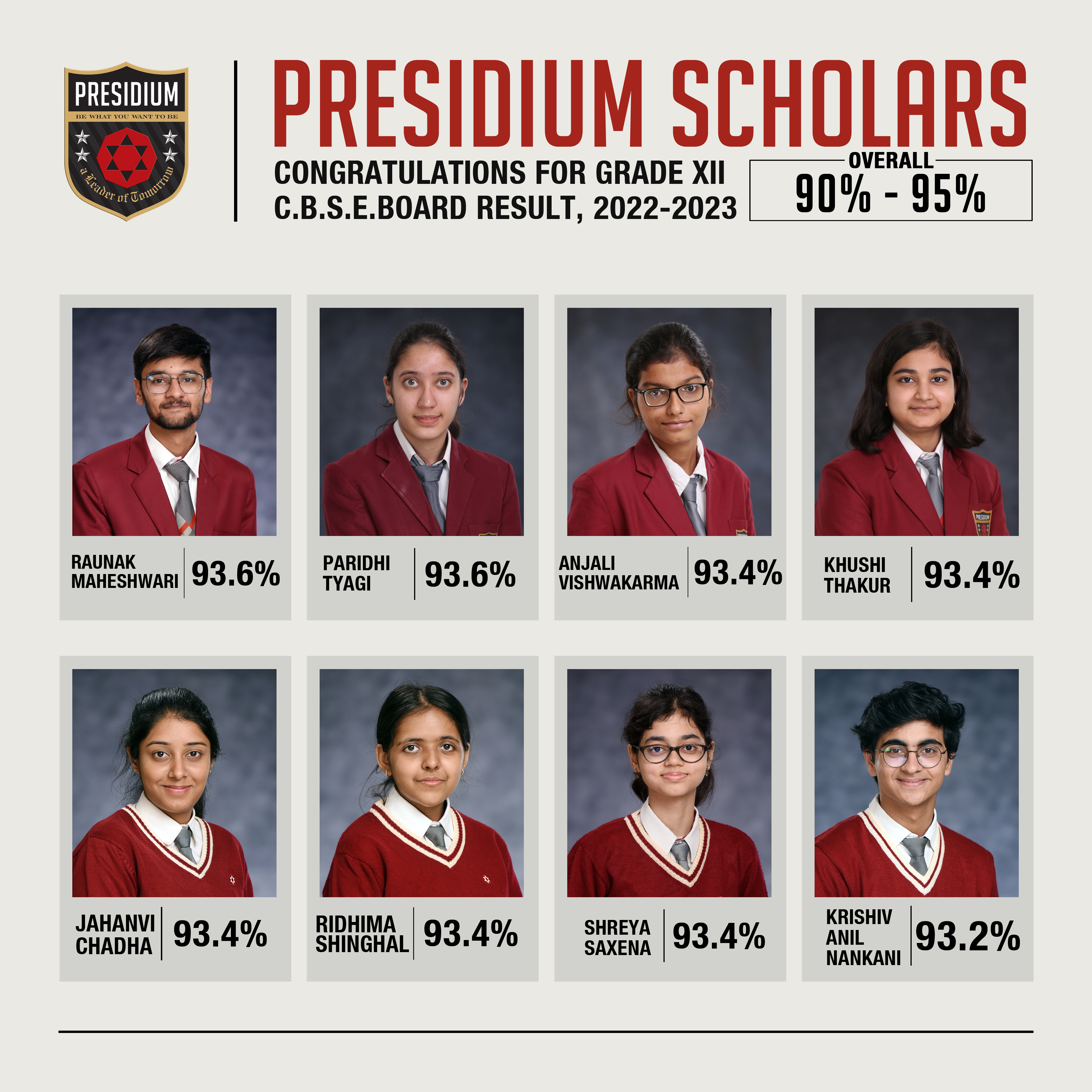 SCHOLARS WITH 95% AND ABOVE