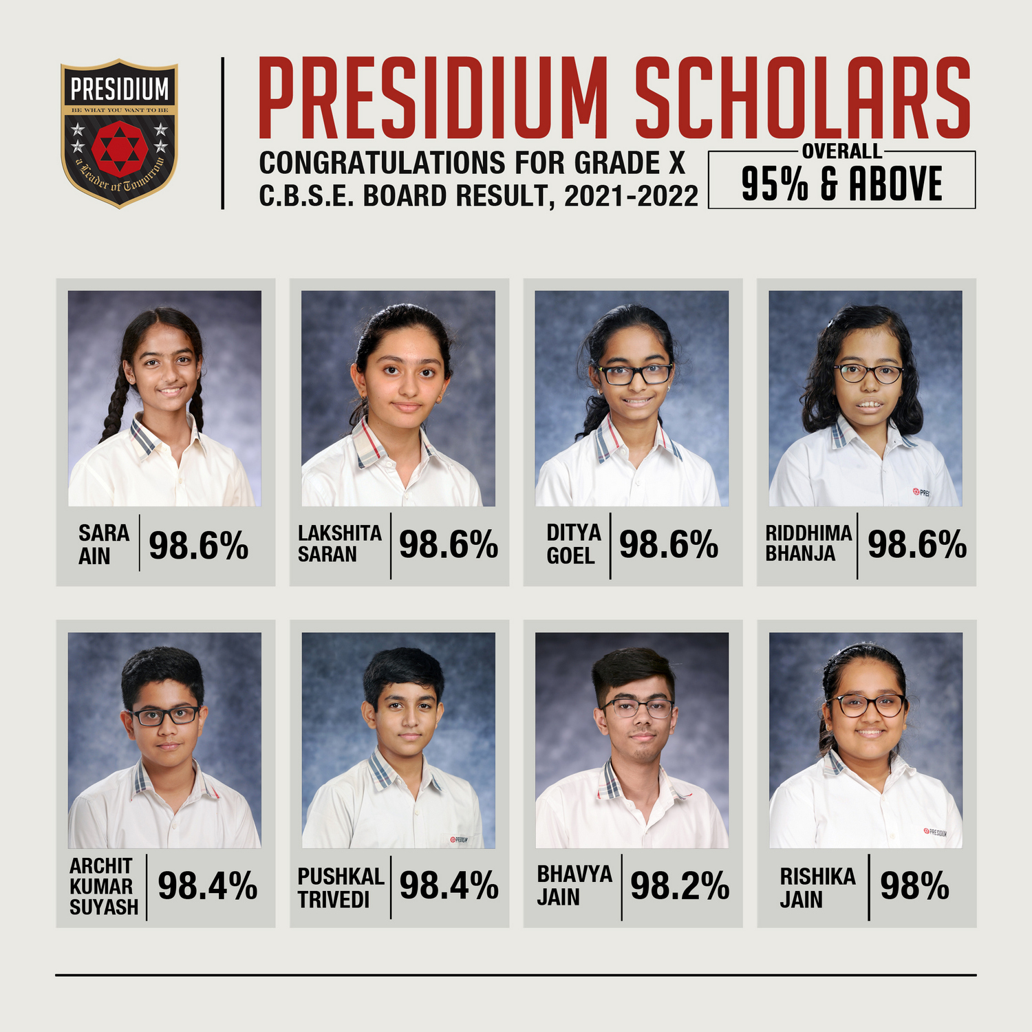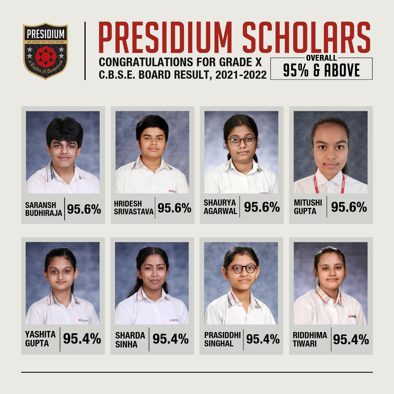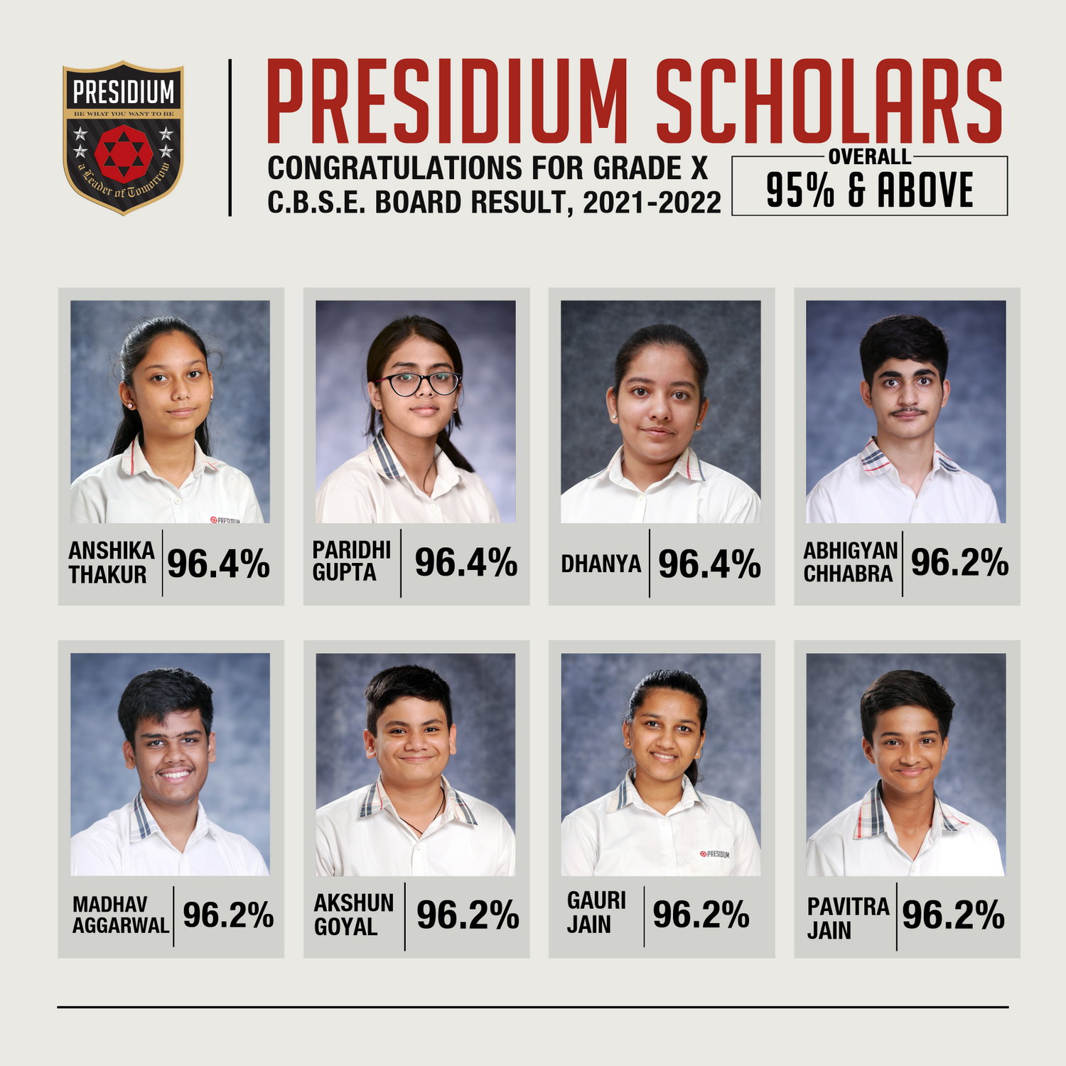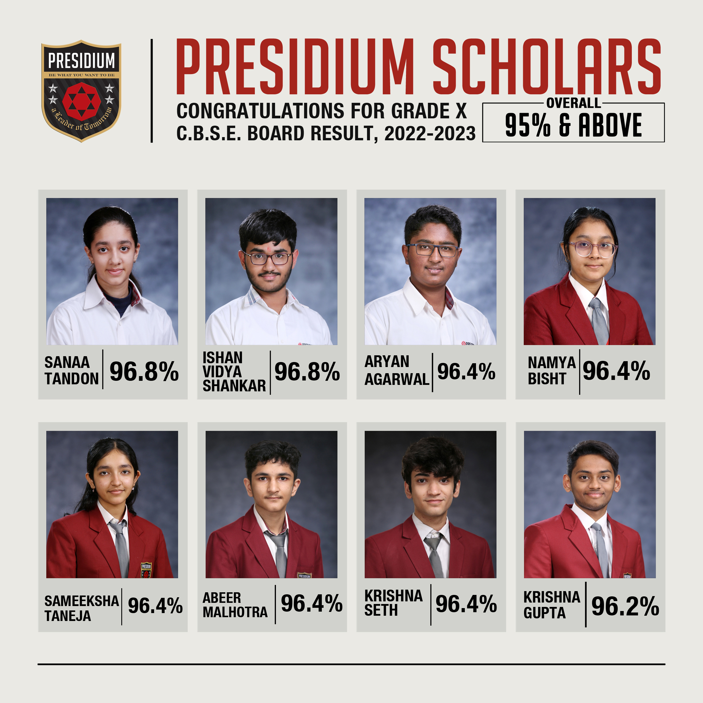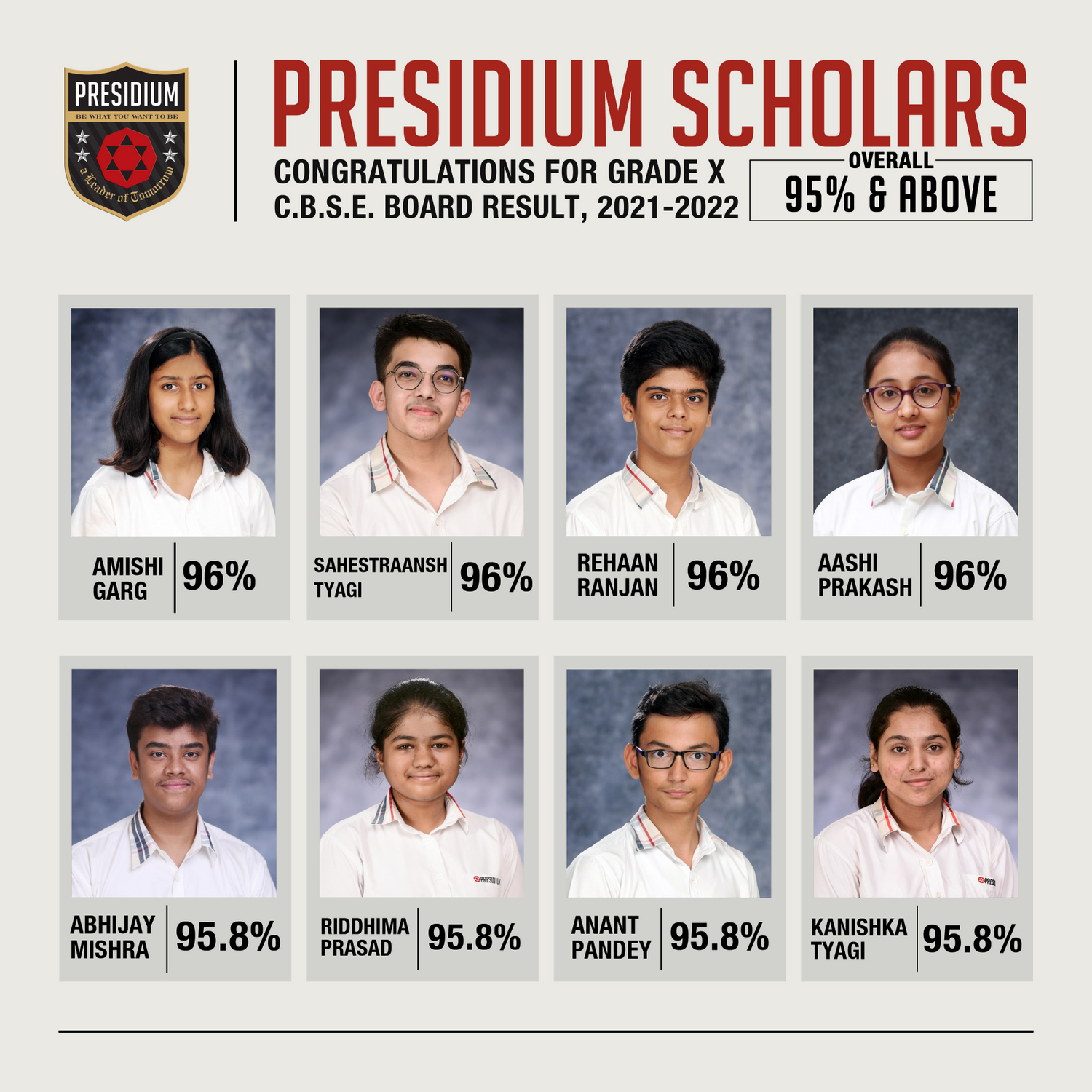 SCHOLARS WITH 95% AND ABOVE