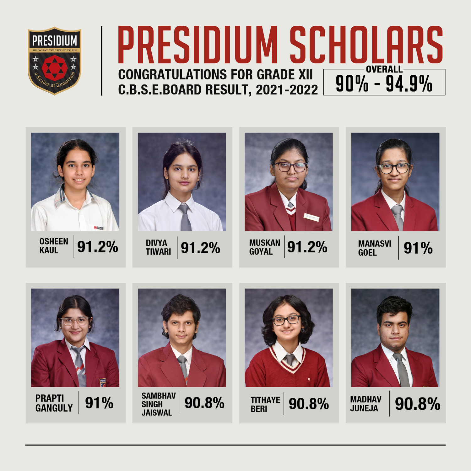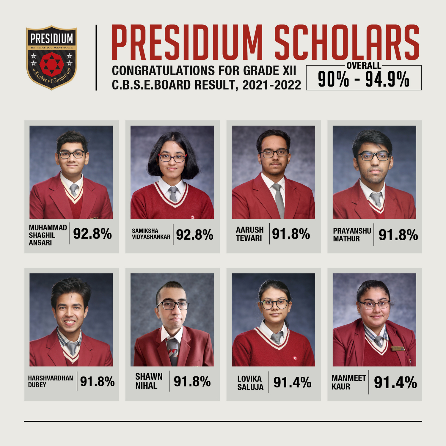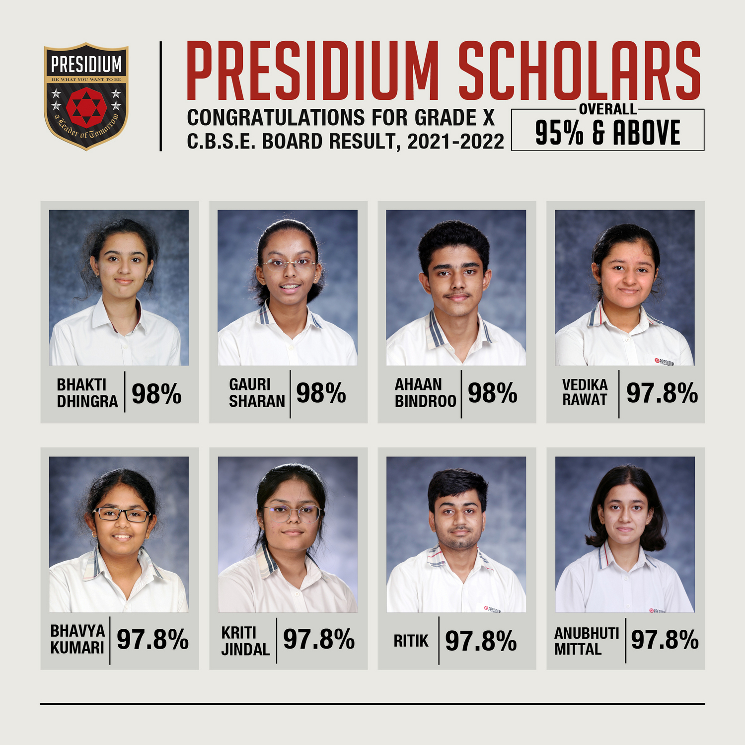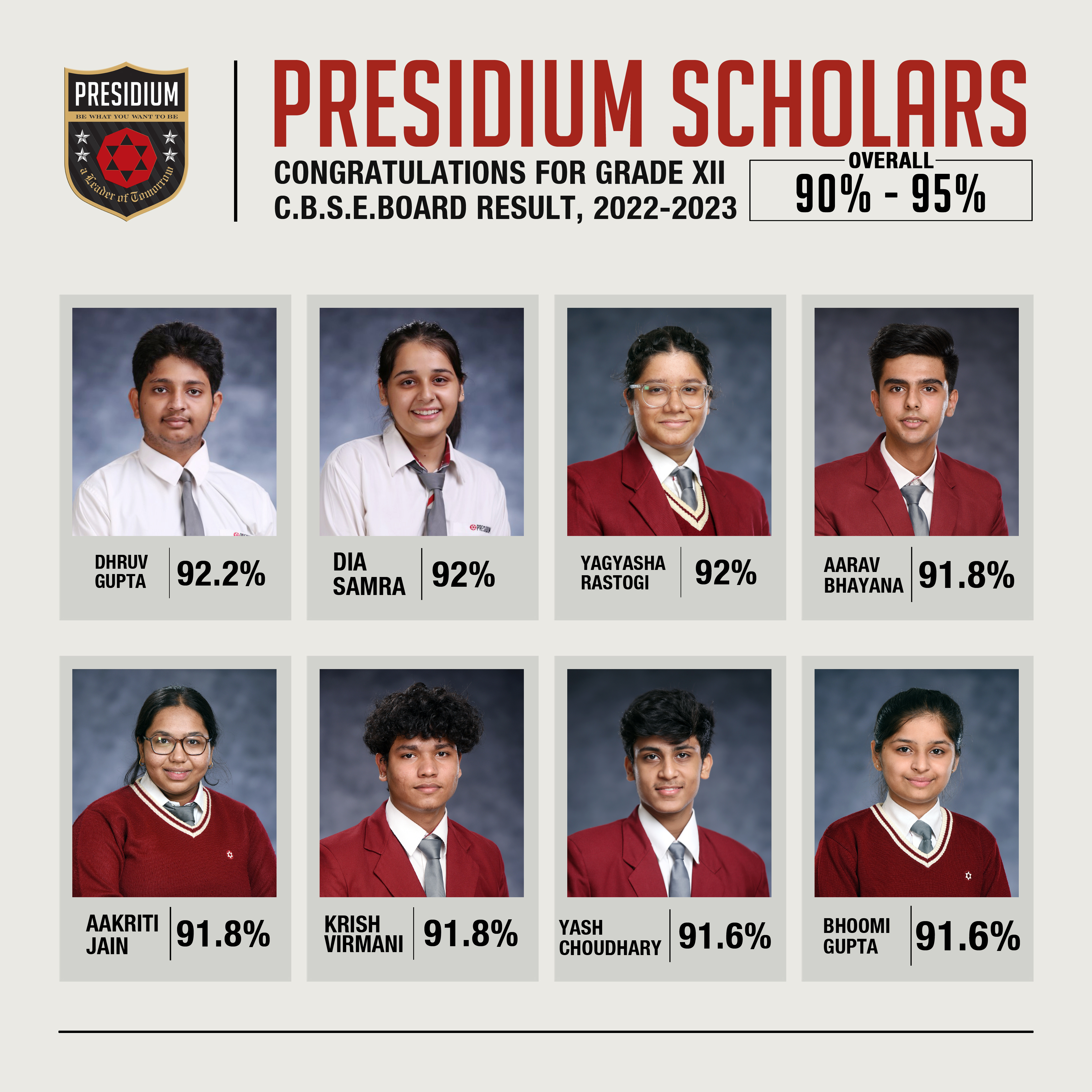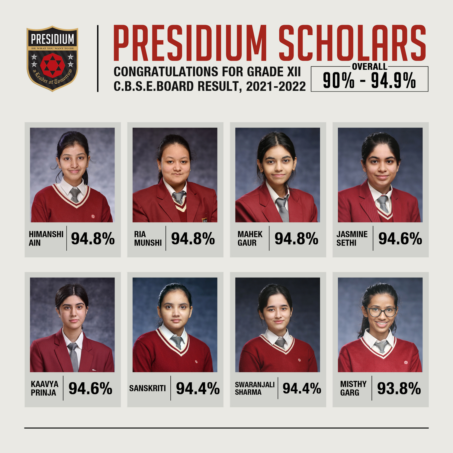 SCHOLARS WITH 95% AND ABOVE