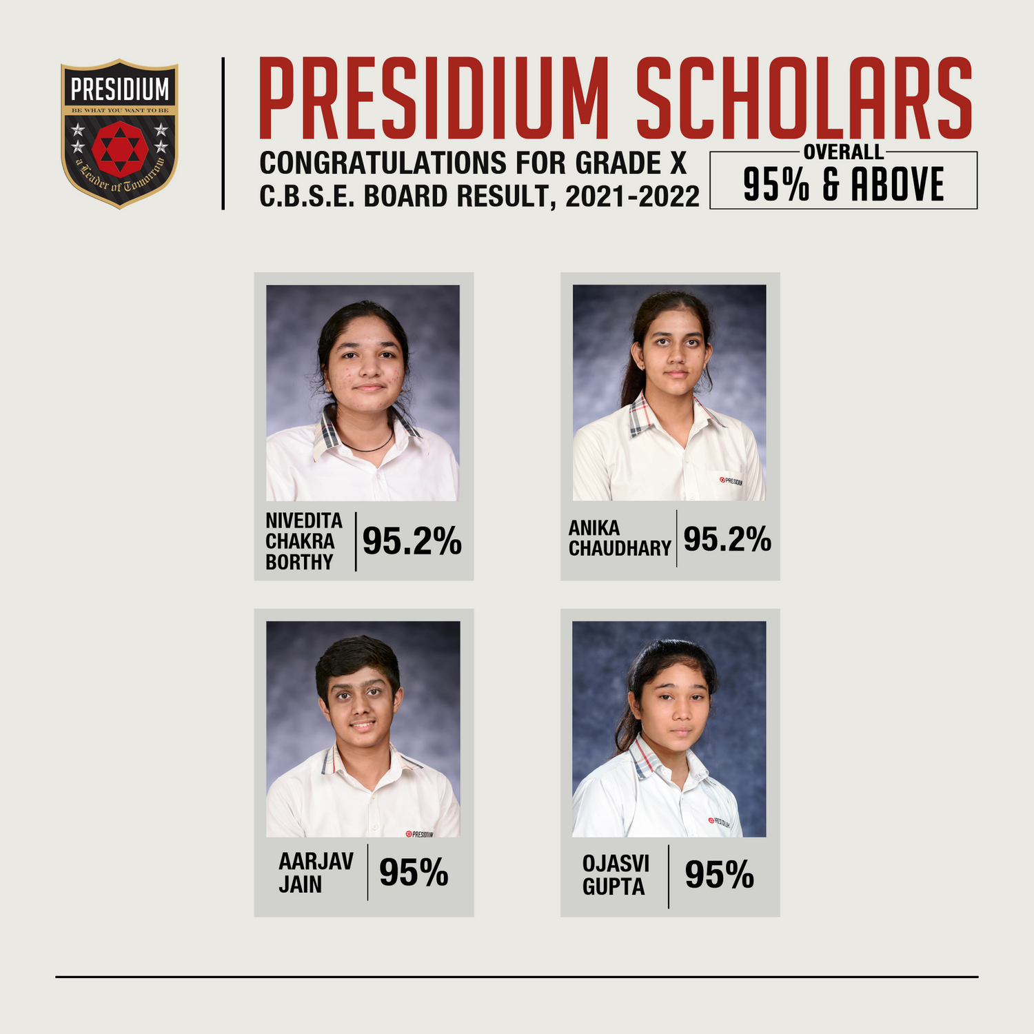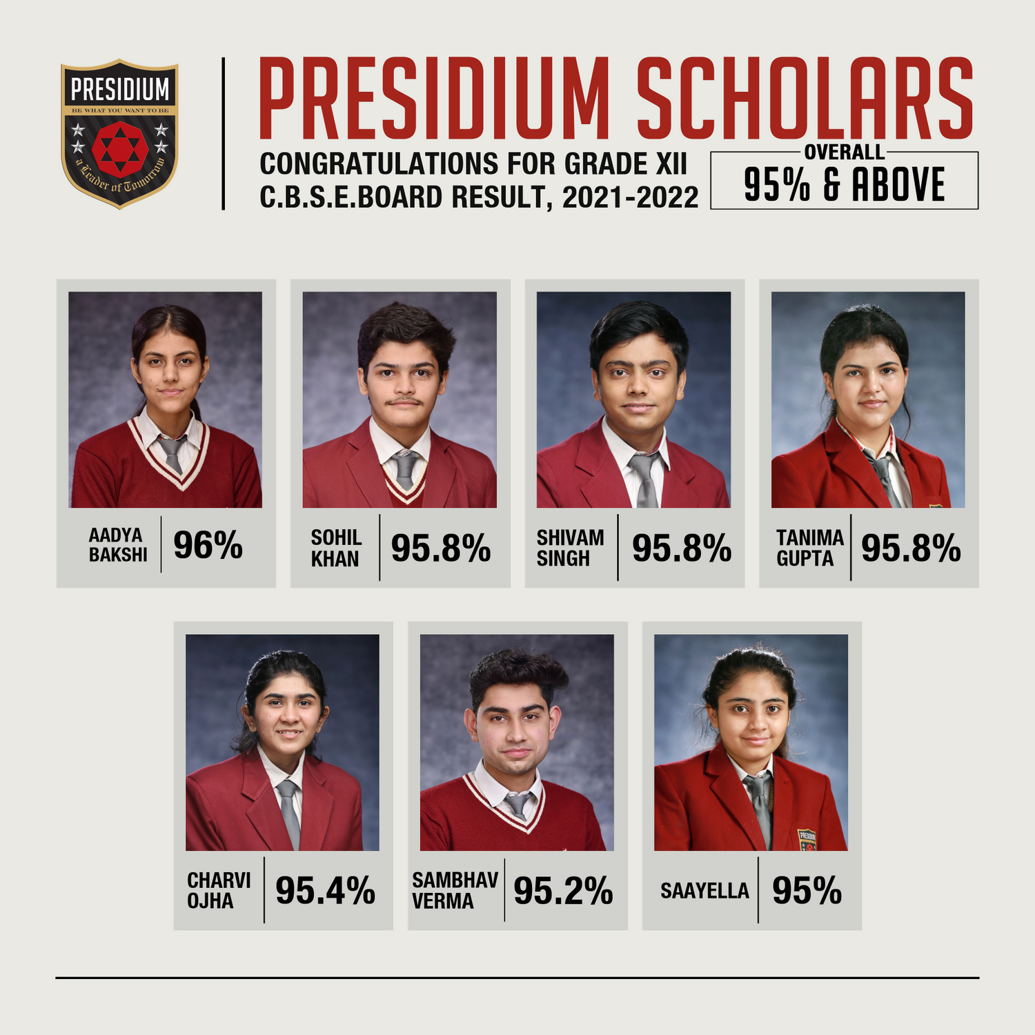 SCHOLARS WITH 95% & ABOVE AGGREGATE