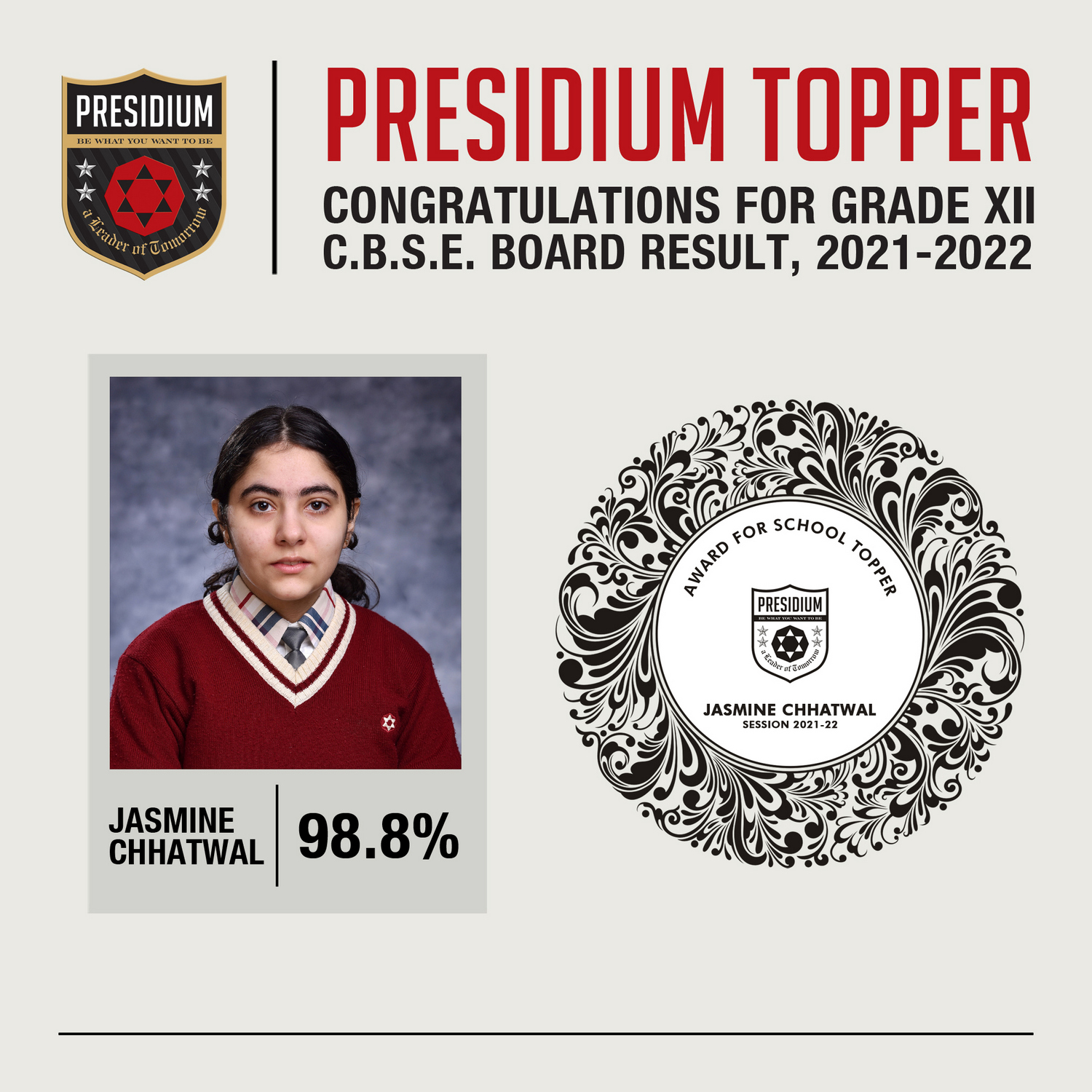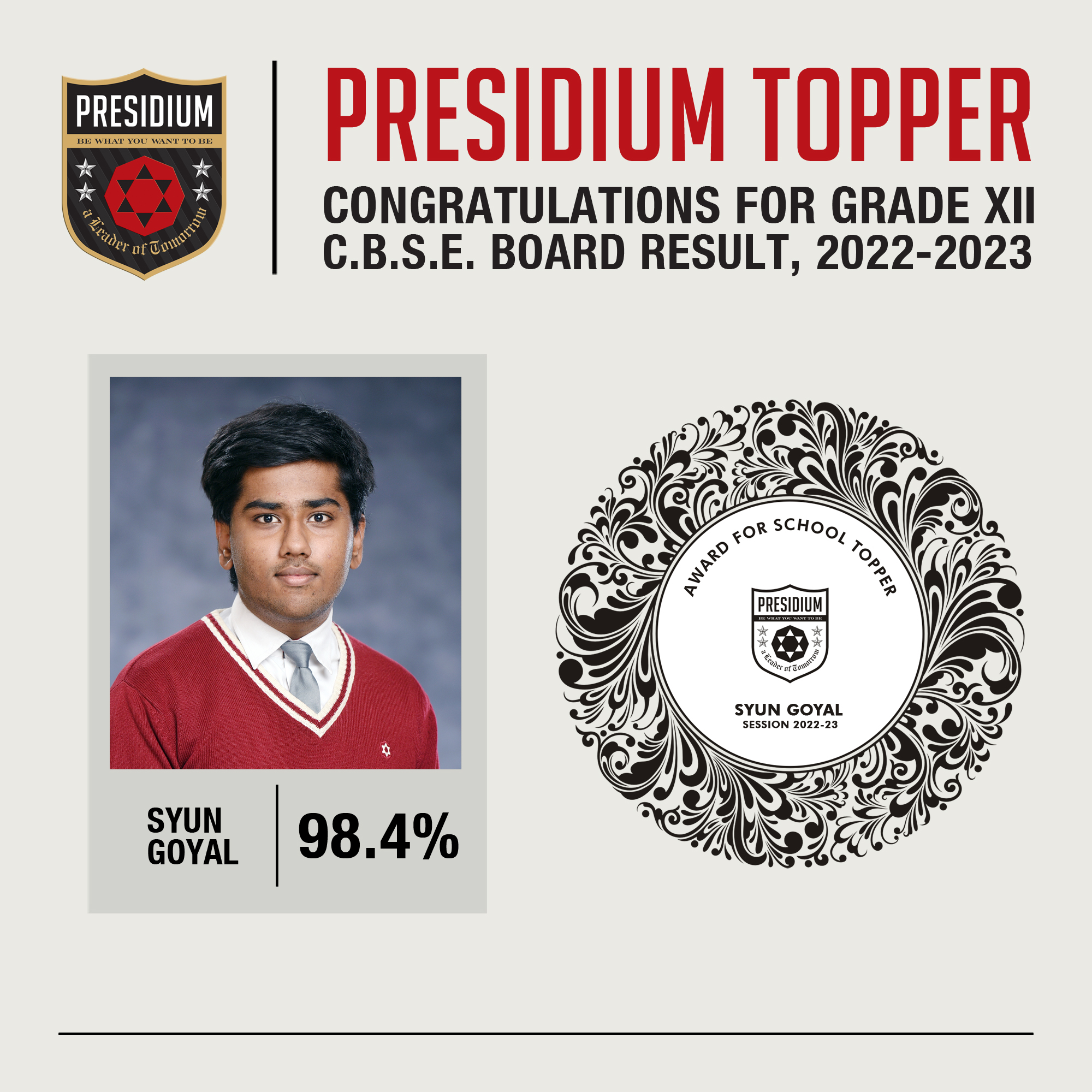 CLASS XII SCHOOL TOPPER