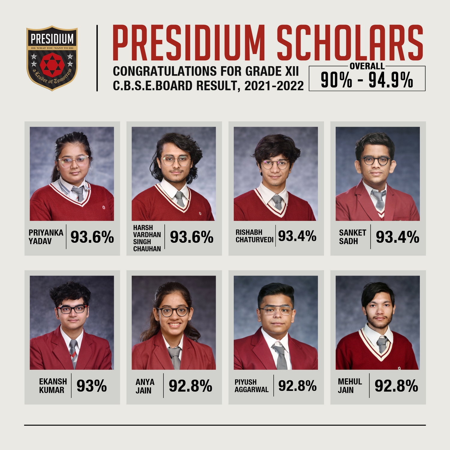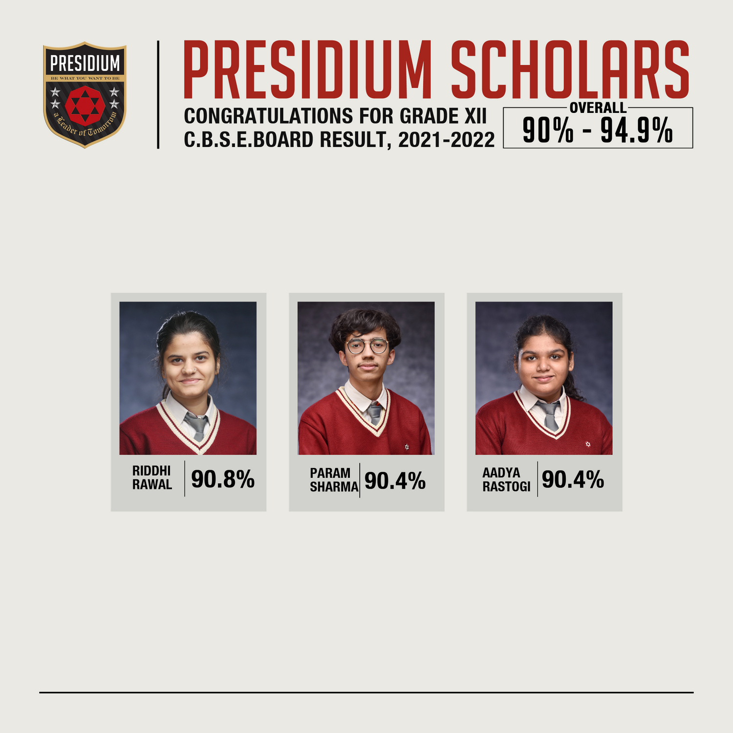 SCHOLARS WITH 90% - 94.9%