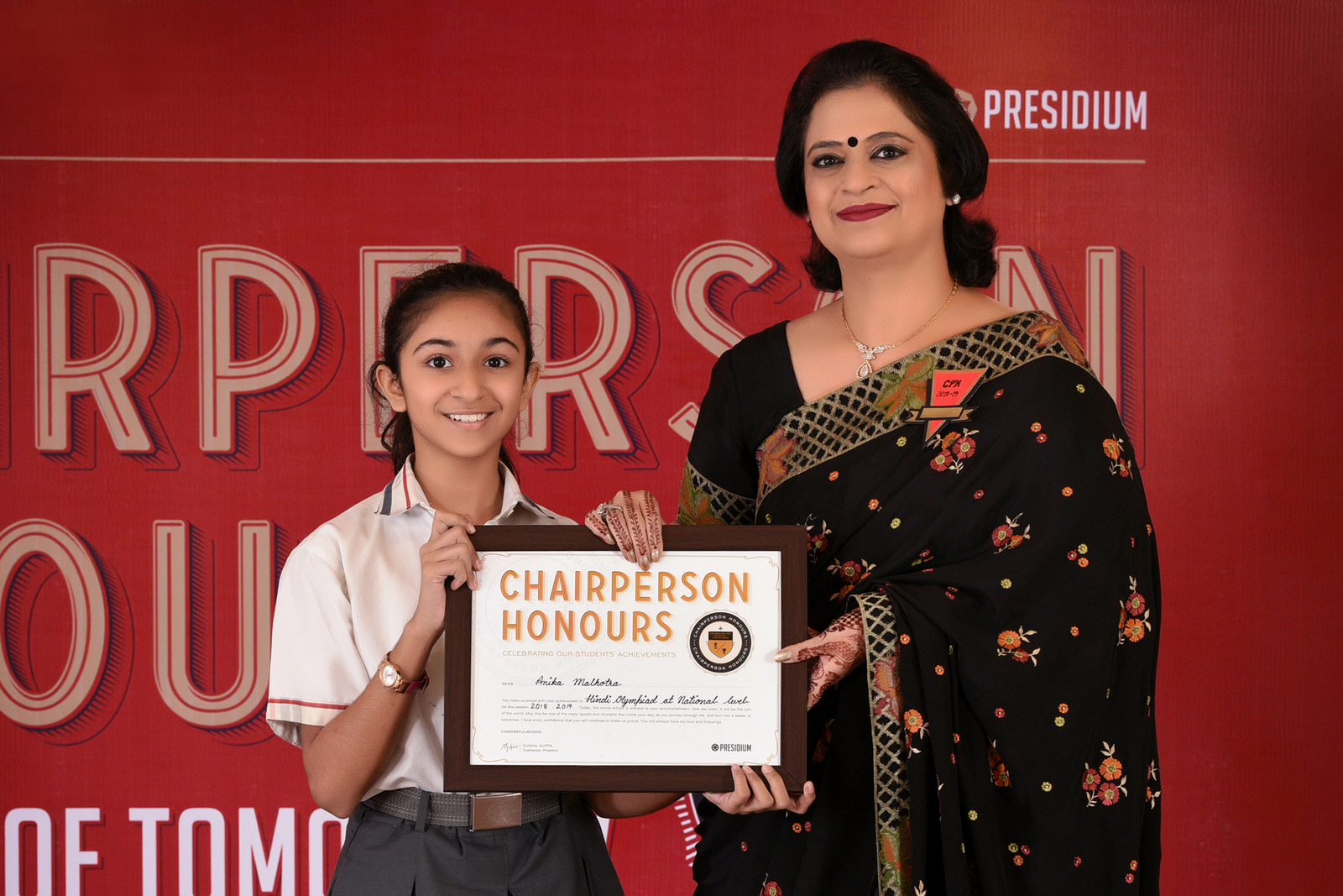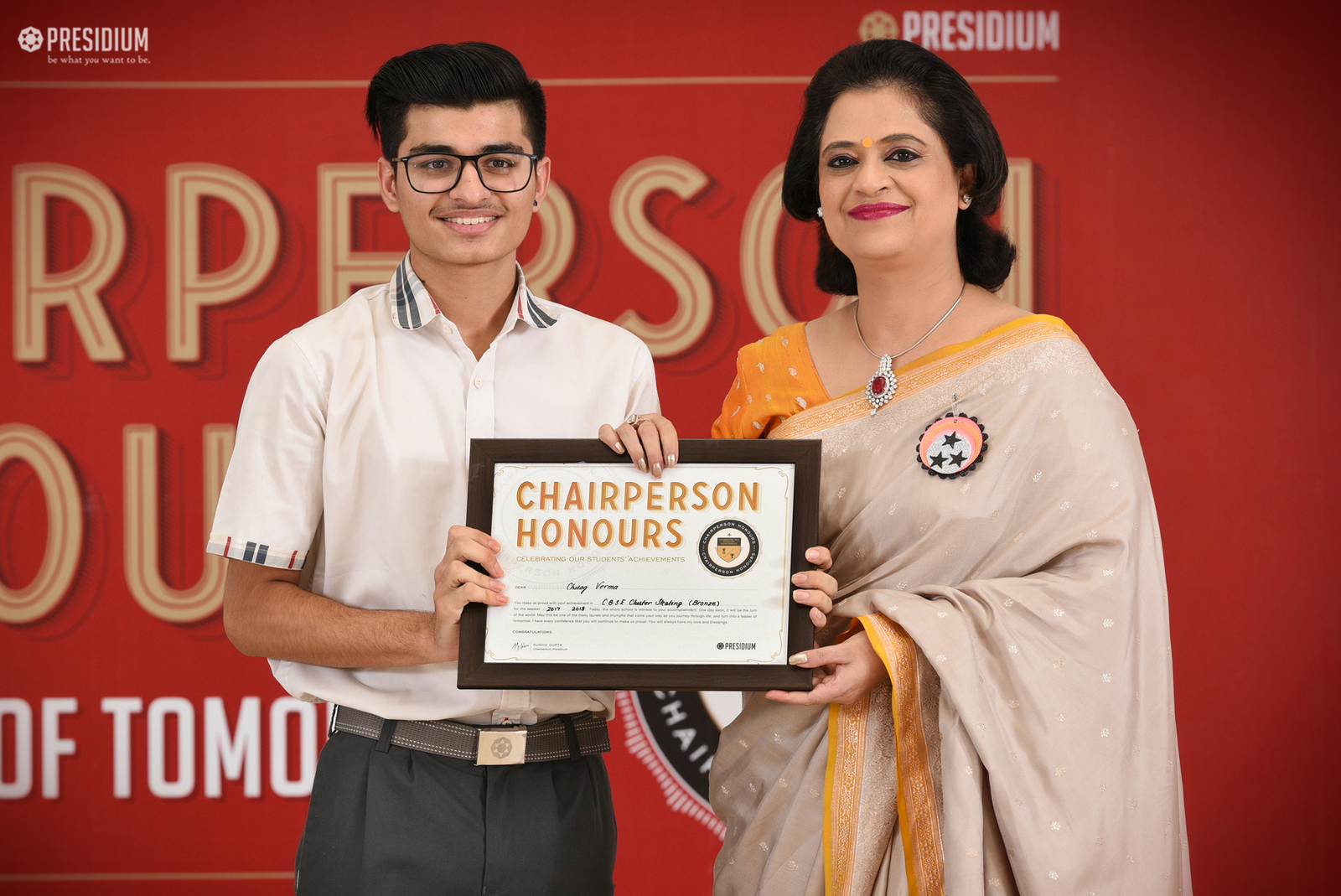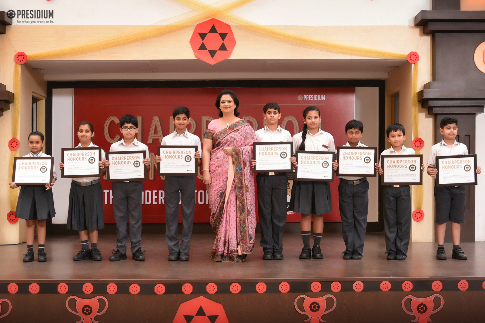 Our Honorary Chairperson, Mrs. Sudha Gupta believes in boosting the confidence of students by recognising their exceptional talents and achievements in diverse fields such as academics, sports and art. A formal ceremony is organised regularly for honouring the young achievers of Presidium.
