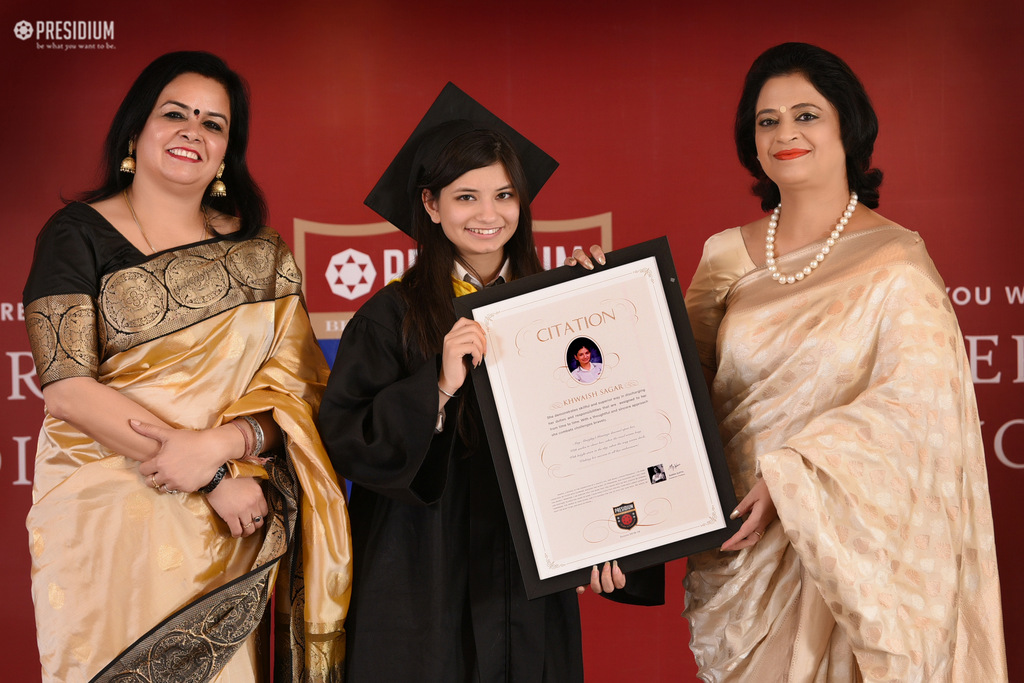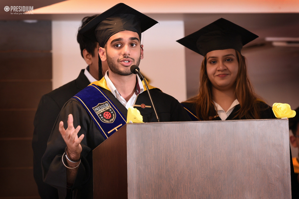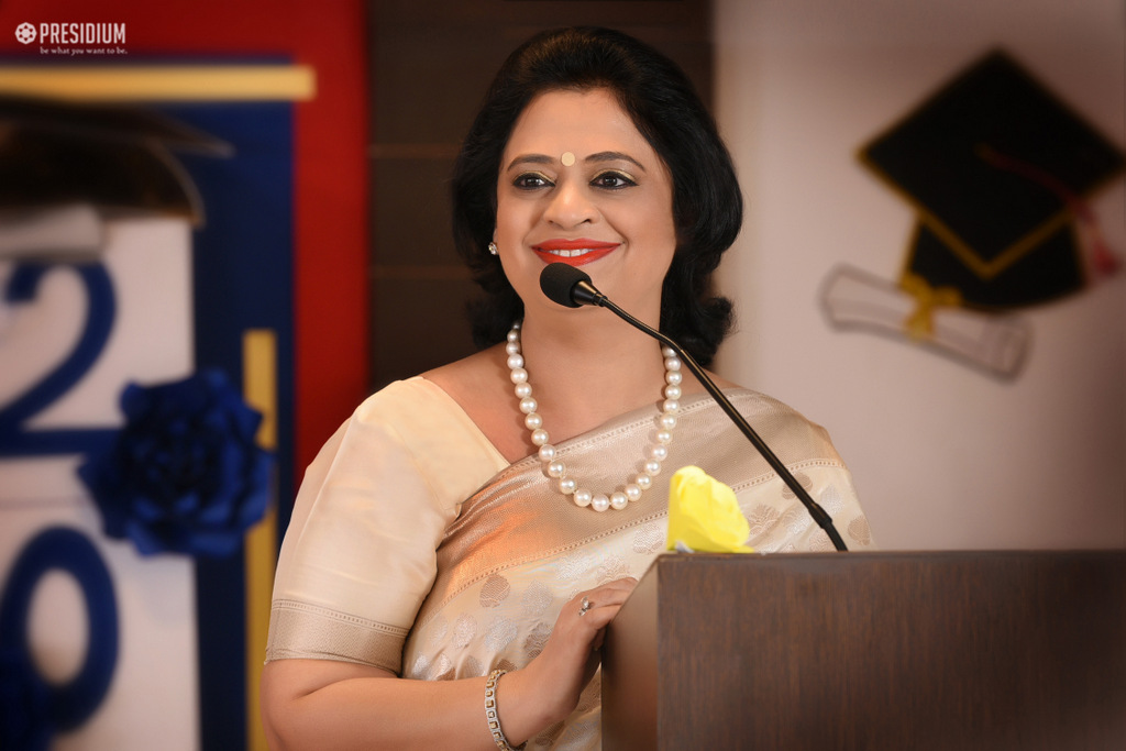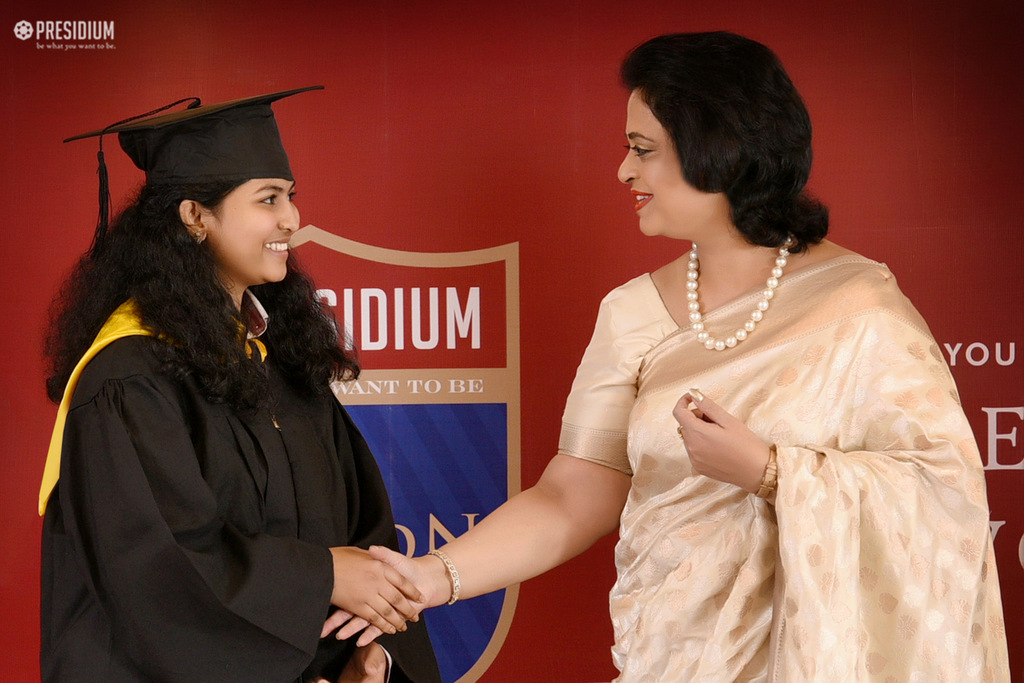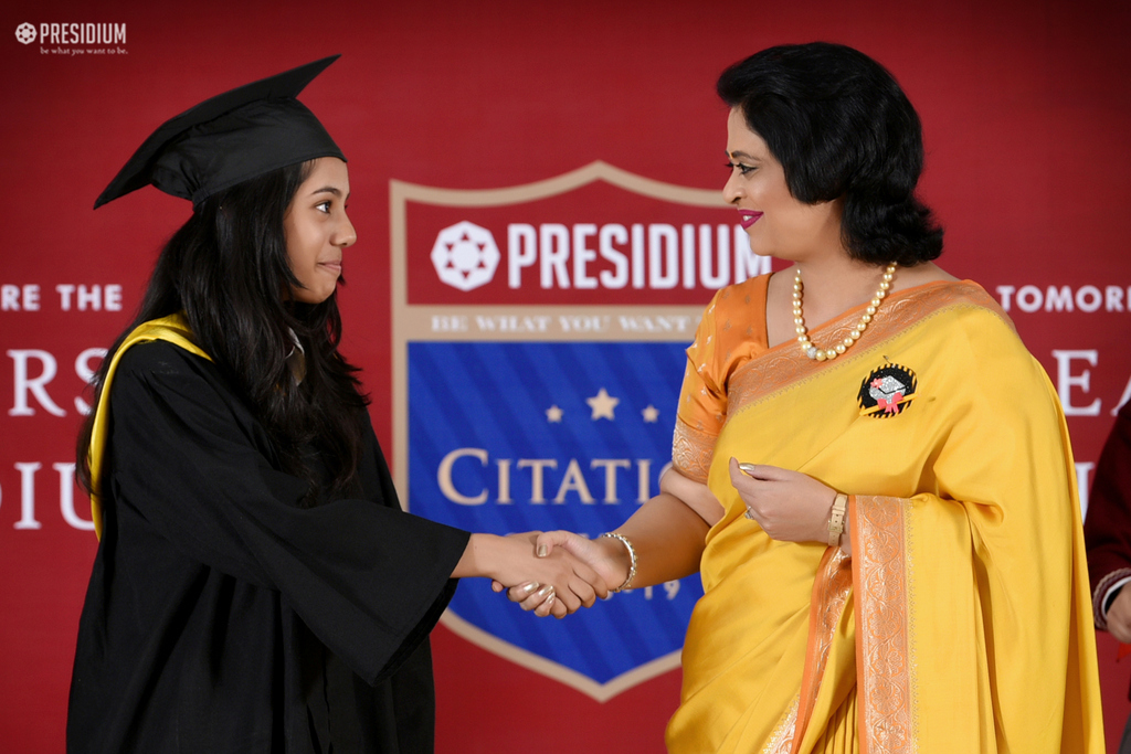 The parents are welcomed to express their views and experiences they had, as a part of Presidium. With tears in the eyes and faces lit with smiles, our Presidians share some of the most amazing experiences they’ve lived at the school right from when they landed their first step here. Mrs.Sudha Gupta congratulates the students for their fruitful journey with Presidium and wishes them luck for the future. The ceremony culminates with sprinkles of blessings as the students part with the aim of making their school proud in all arenas of life.