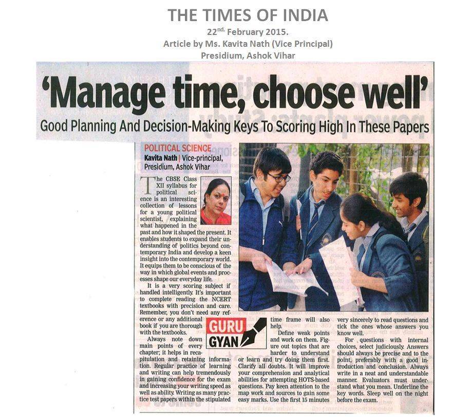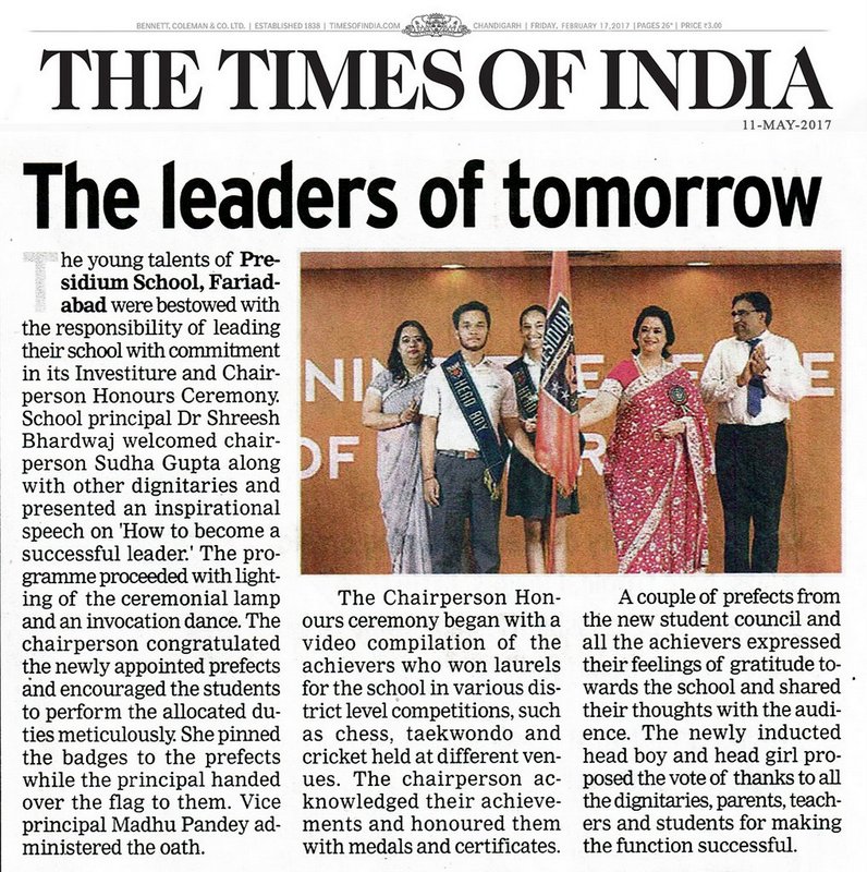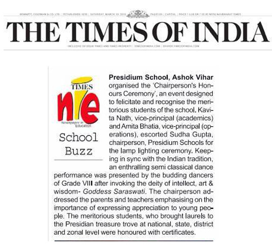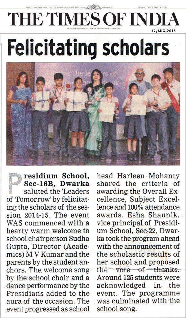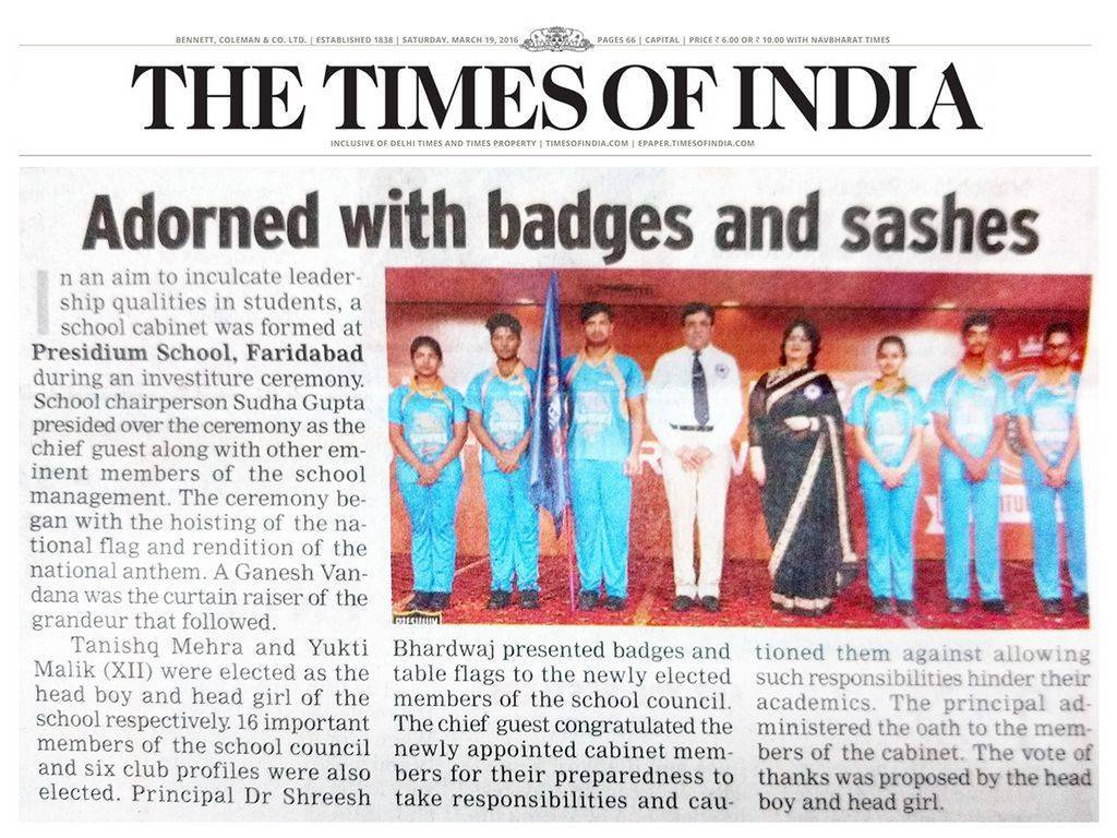 TOI FEATURES PRESIDIANS' ACHIEVEMENT