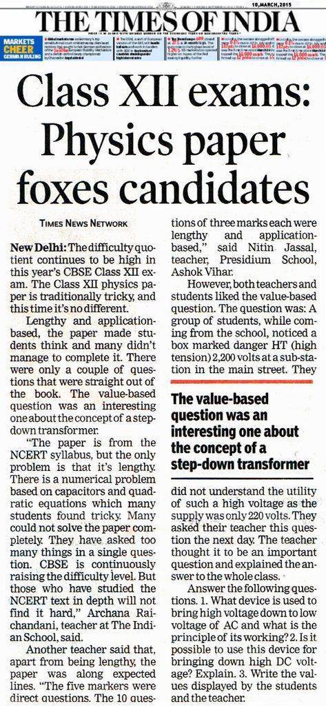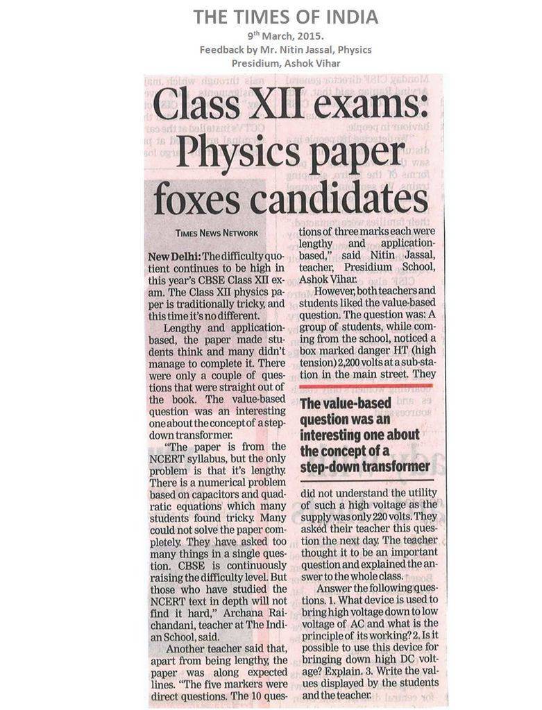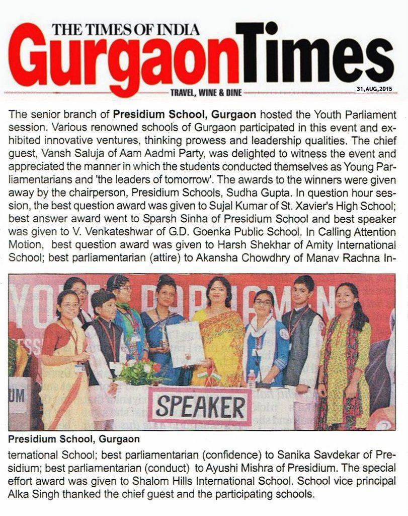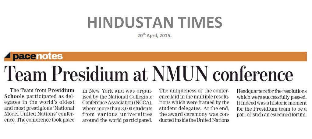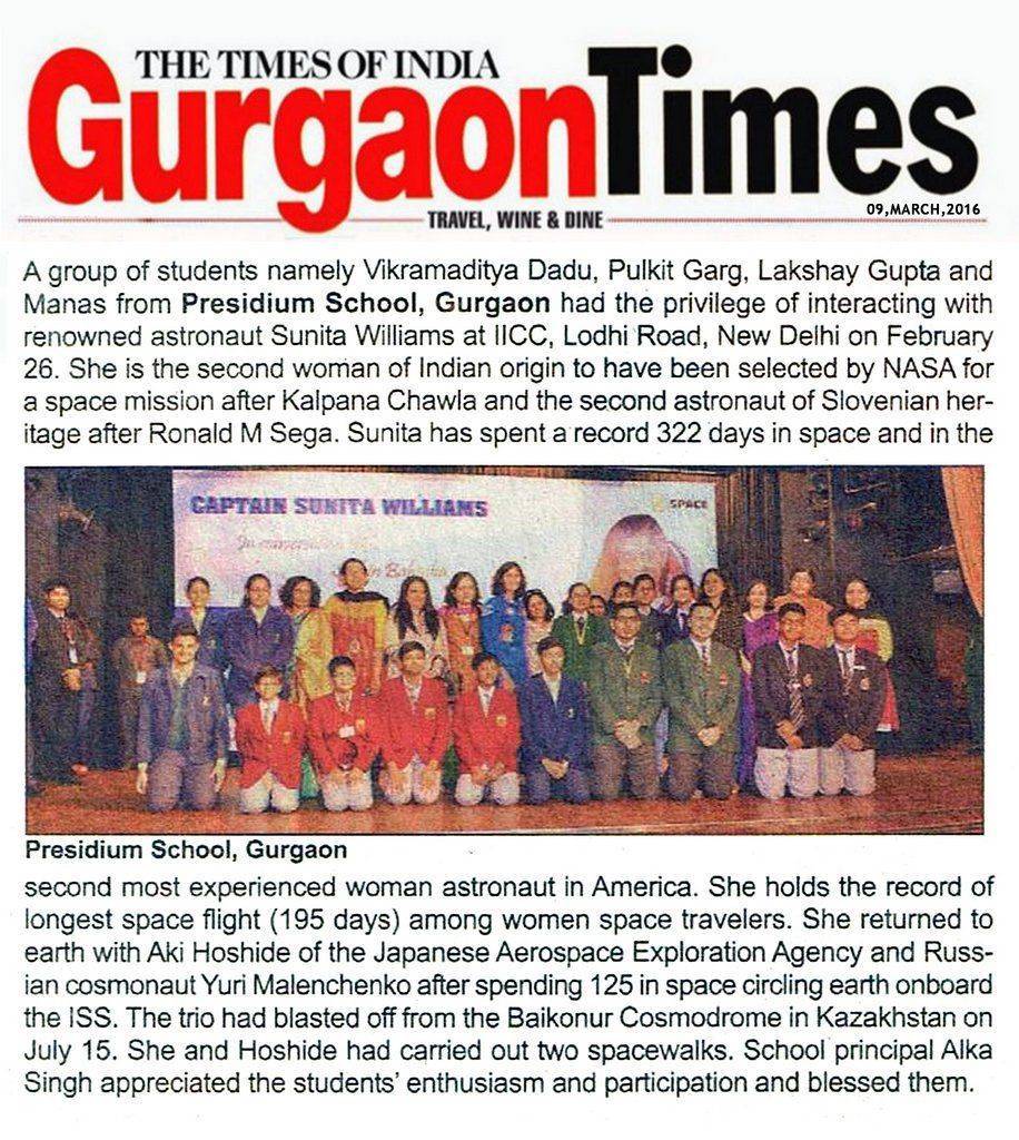 TOI FEATURES PRESIDIANS' ACHIEVEMENT