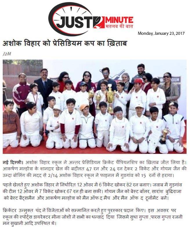 ASHOK VIHAR WINS INTER PRESIDIUM