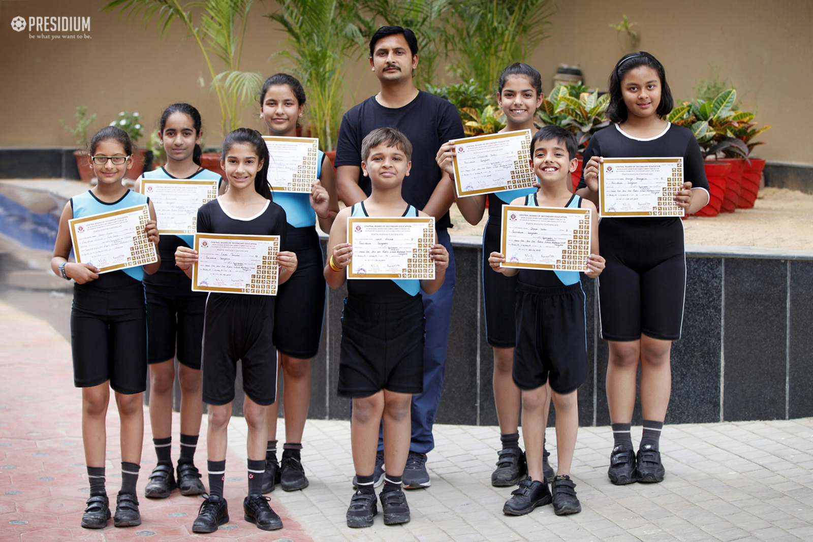 Swimmers do: more sets than a volleyball player, more yards than a football player, more flips than a cheerleader, more kicks than a soccer player and more laps than a runner – still think swimming is not a sport? Well, at least Presidium knows what a sport swimming is. With talented and experienced coaches, every year Presidium students make the school proud by participating and holding a good ground in inter-school competitions.