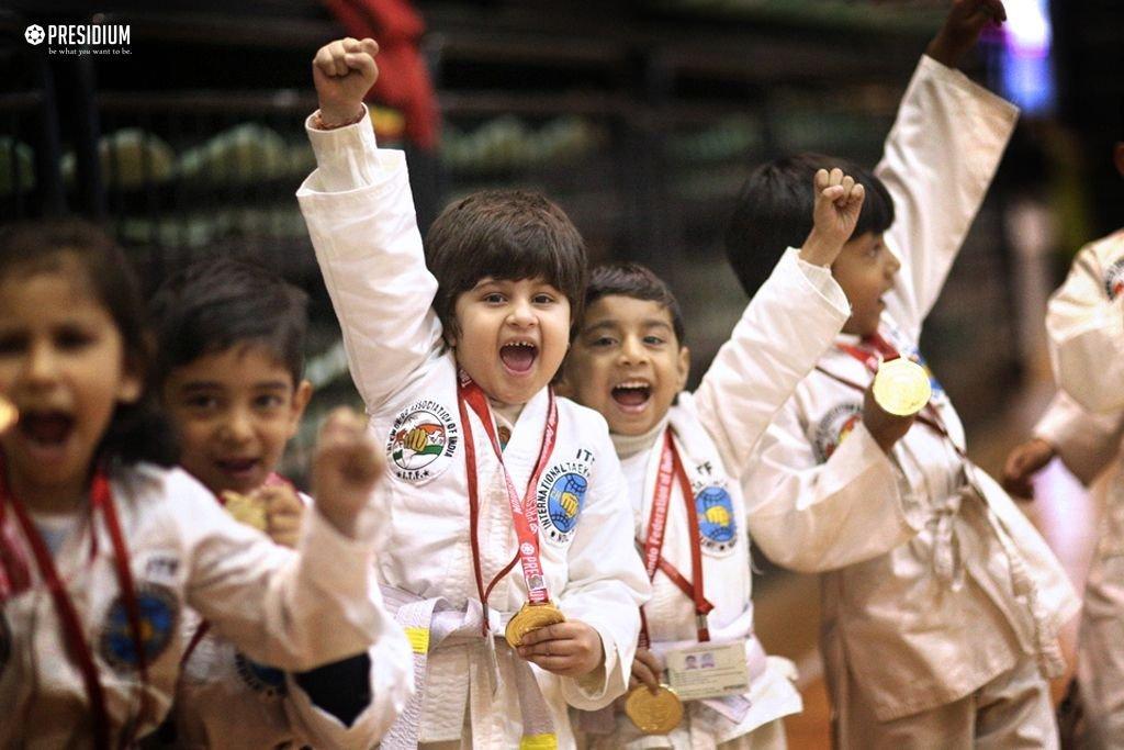 The hard work of students and the dedication of teachers together have created Taekwondo champions in Presidium. The in-house taekwondo coaches ensure that the students learn the art of perseverance and prove a mettle with their strong kicks and punches. Presidium is always proud to see the students getting a belt higher and winning at all championships.