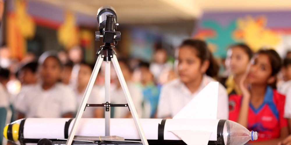 To explore the fascinating world of Astronomy, we at Presidium organise workshops that nurture our young league of students and aspiring scientists to learn, grow and follow in the footsteps of esteemed Indian astronomers. They are given an experience of astronomy in school premises itself as they experience the wonders of the Universe, through talks, hands-on activities and telescope viewings. We aim at churning out innovative and exciting hands-on astronomy education. We start with a brief computer-based presentation of the existing planets, moon, asteroids, comets and the sun. We also provide availability of detailed 3D models of different asteroids, man-made spacecrafts, and solar system terrains for children to explore the immediate surrounding universe.